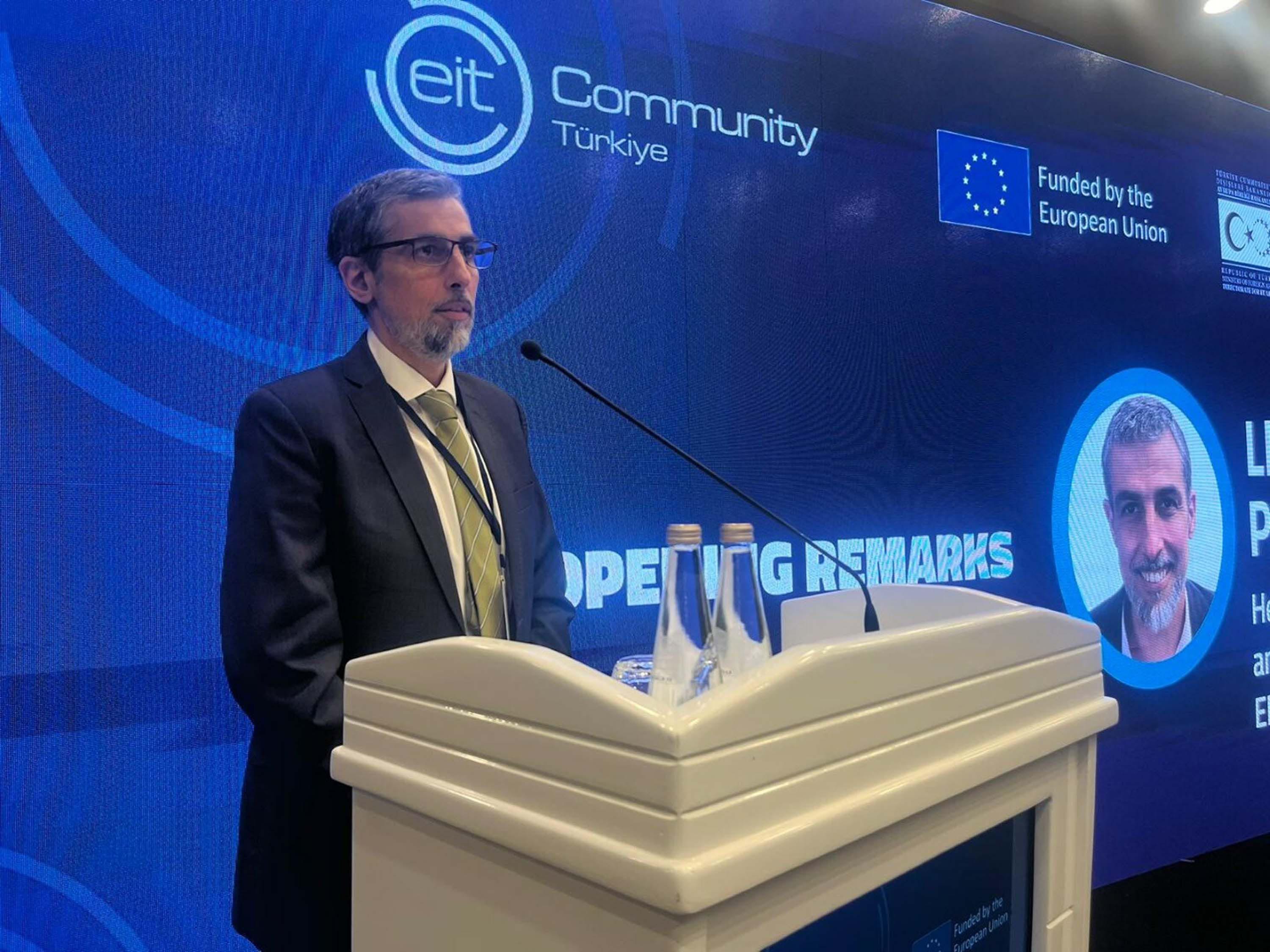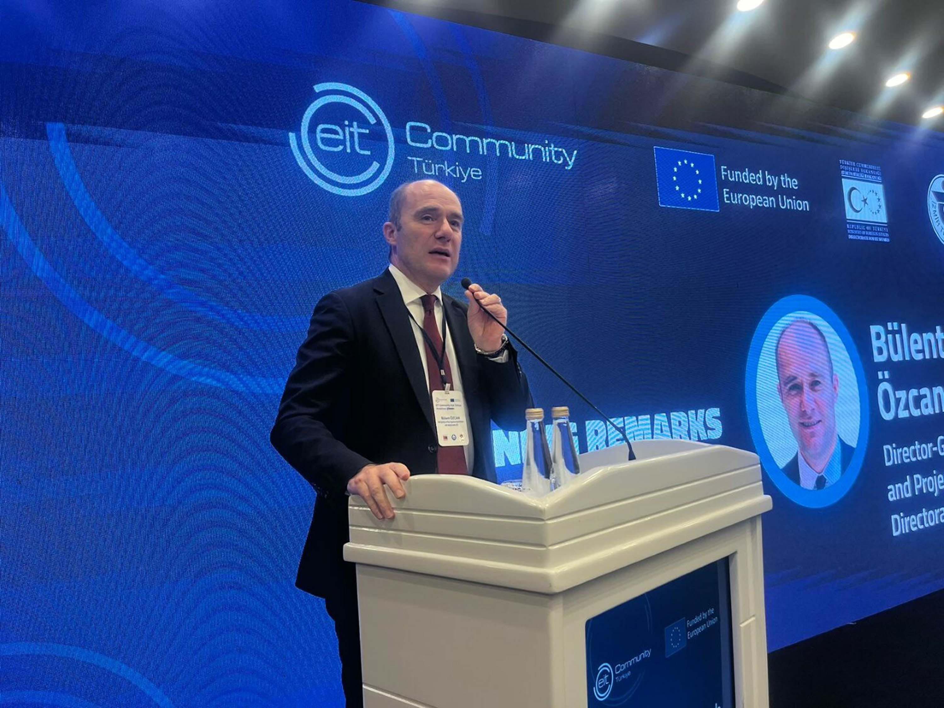 Dışişleri Bakanlığı Avrupa Birliği Başkanlığı Mali İş Birliği ve Proje Uygulama Genel Müdürü Bülent Özcan, Avrupa Birliği programları içerisinde en değerli programlardan bir tanesinin inovasyona ve teknolojiye yatırım yapan Ufuk Avrupa Programı olduğunu belirterek, "Uzun soluklu bir geçmişe sahip, 7 yıllık dönemlerde planlanan bir program. Şu anda da 2021-2027 dönemindeyiz. Yaklaşık 93,5 milyar liralık bir bütçesi var. Ülkemiz 2018'den ciddi bir ivmeyle yükselen grafikte bu ekosistemin parçası olmaya çalışıyor. 2021-2027 döneminde yaklaşık 362 milyon euroluk bir kaynağı tüm kuruluşlarımızla beraber geliştirdiğimiz projelerle Türkiye çekmiş bulunuyoruz. Tüm Avrupa'da 20'nci sıradayız. Potansiyelimize baktığımız zaman Türkiye'nin daha iyi yerlerde olması lazım. Bu tarz programların içerisinde daha çok varlık göstermesi gerekiyor. Uluslararasılaşma ve uluslararası iş birlikleri bu programın kaçınılmaz sonucu. Program bilimi, araştırmacıyı üniversiteleri, özel sektörü girişimcilik ekosistemlerini destekliyor. EIT de tamamen bir ekosistem oluşturma altyapısı. 2 bin 500 kuruluş var. Ufuk Avrupa programıyla, Avrupa içerisinde teknoloji inovasyon girişimcilik alanında çalışacak kuruşları beraber çalışmaları için finanse edilmiş bir ekosistem geliştirme olarak özetleyebiliriz" dedi.