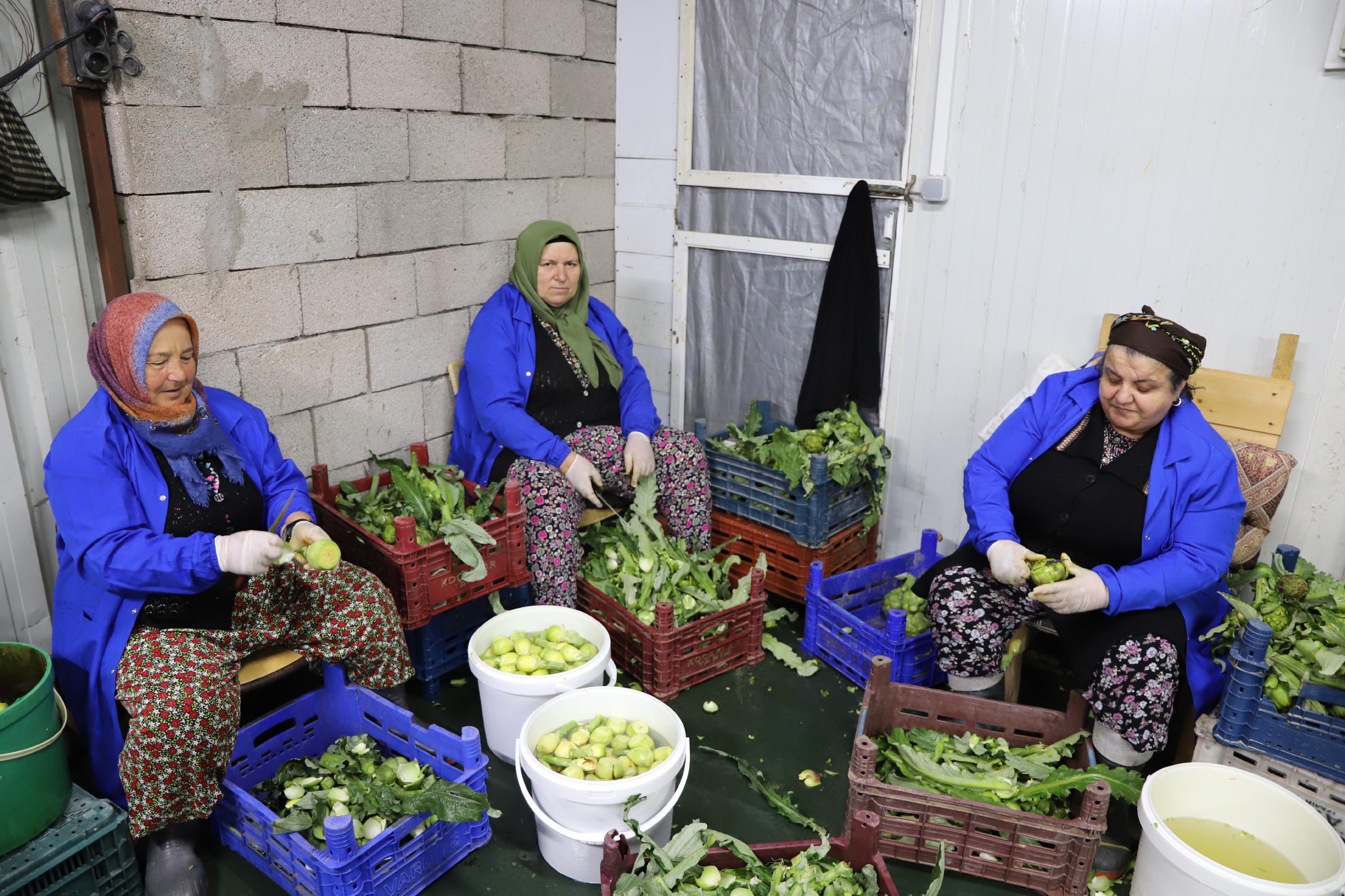 Urla'da çiftçilik yapan Esma Akcel (55), babasının 5 dönümlük arazisinde kardeşiyle birlikte üretim yaptıklarını belirterek, "Hasada bir ay önce başladık, nisan ayından mayısa kadar zirveye ulaşıyor. Üretimi, bakılması, büyütülmesinin en az 3-4 aylık bir geçmişi var. Atadan çiftçiyiz. Çocukluğumdan beri domates, biber, aklınıza gelebilecek her şeyi diktik. Enginar hem işçilik hem verim açısından çok güzel. Domatesi hastalık vurunca kurtaramıyorsunuz, olduğu gibi bütün tarla zarar görüyor. Ama enginarı kurtarabiliyorsunuz.