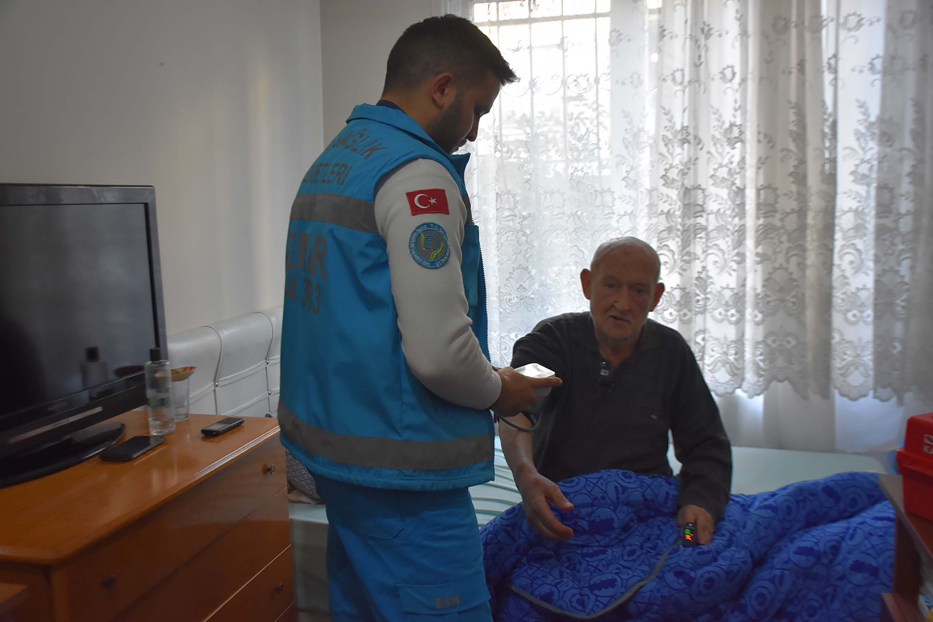İzmir İl Sağlık Müdürü Ayhan Kul, Karabağlar ilçesinde Atatürk Eğitim ve Araştırma Hastanesi Evde Sağlık Hizmetleri Birimi tarafından yapılan evde sağlık kontrolüne katıldı. Evde sağlık hizmetlerinden yaklaşık 6 yıldır yararlanan Kaya Şenel'in (77) rutin muayenesi yapıldı. İzmir'de evde sağlık hizmetlerinin çok güçlü şekilde ilerlediğini anlatan Kul, "2025 yılı içerisinde 300 bininci hastayı ziyaret ettik. Çok yoğun bir tempo içinde ekiplerimiz çalışıyor. İzmir'de güçlü bir ekip kuruldu. 30 hastane, 7 ağız diş sağlığı merkezi olmak üzere toplam 37 birimimiz var. 64 araç 315 personel ile büyük bir ekip olarak çalışıyoruz" dedi. İzmir'de 2025 yılı itibariyle evde sağlık hizmetlerine kayıtlı aktif 53 bin 398 hastanın bulunduğunu açıklayan Müdür Kul, şöyle devam etti: "Talep üzerine ev ortamında sadece bu yıl 300 bin hasta muayenesi yapıldı, 50 bin hastanın raporu düzenlendi. Yüzlerce enjeksiyon yapıldı. 11 bin mesane sondası takıldı. 42 bin tetkik sonucu için numune alındı. Herhangi bir başvuruya gerek kalmadan ayda yaklaşık 15 bin hastamıza e-rapor hizmeti verildi. Bu yıl hastaneye ulaşımı gereken 40 bin hastamızın da ambulansla hastaneye nakli sağlandı. Bugünkü hastamız da kalp, tansiyon, şeker hastalığı olan bir hastamız. Kendisini daha sık ziyaret ederek takiplere devam edeceğiz."