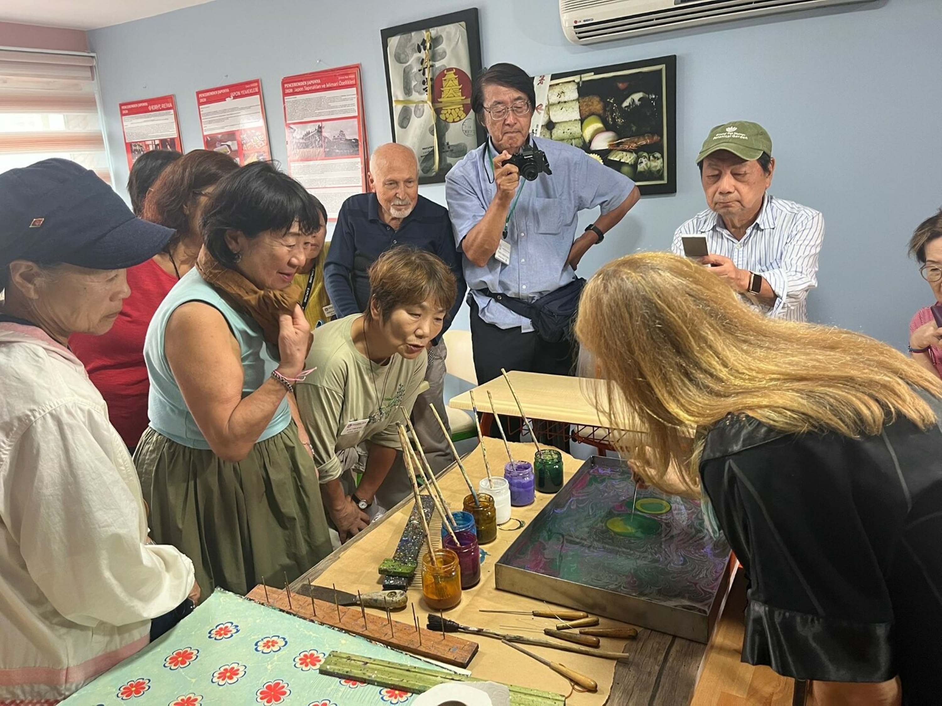 İlk önce Tarihi Kemeraltı Çarşısı'nı gezen konuklar, ardından düzenlenen ebru atölyesinde Türk kültürünü deneyimleme fırsatı buldu.