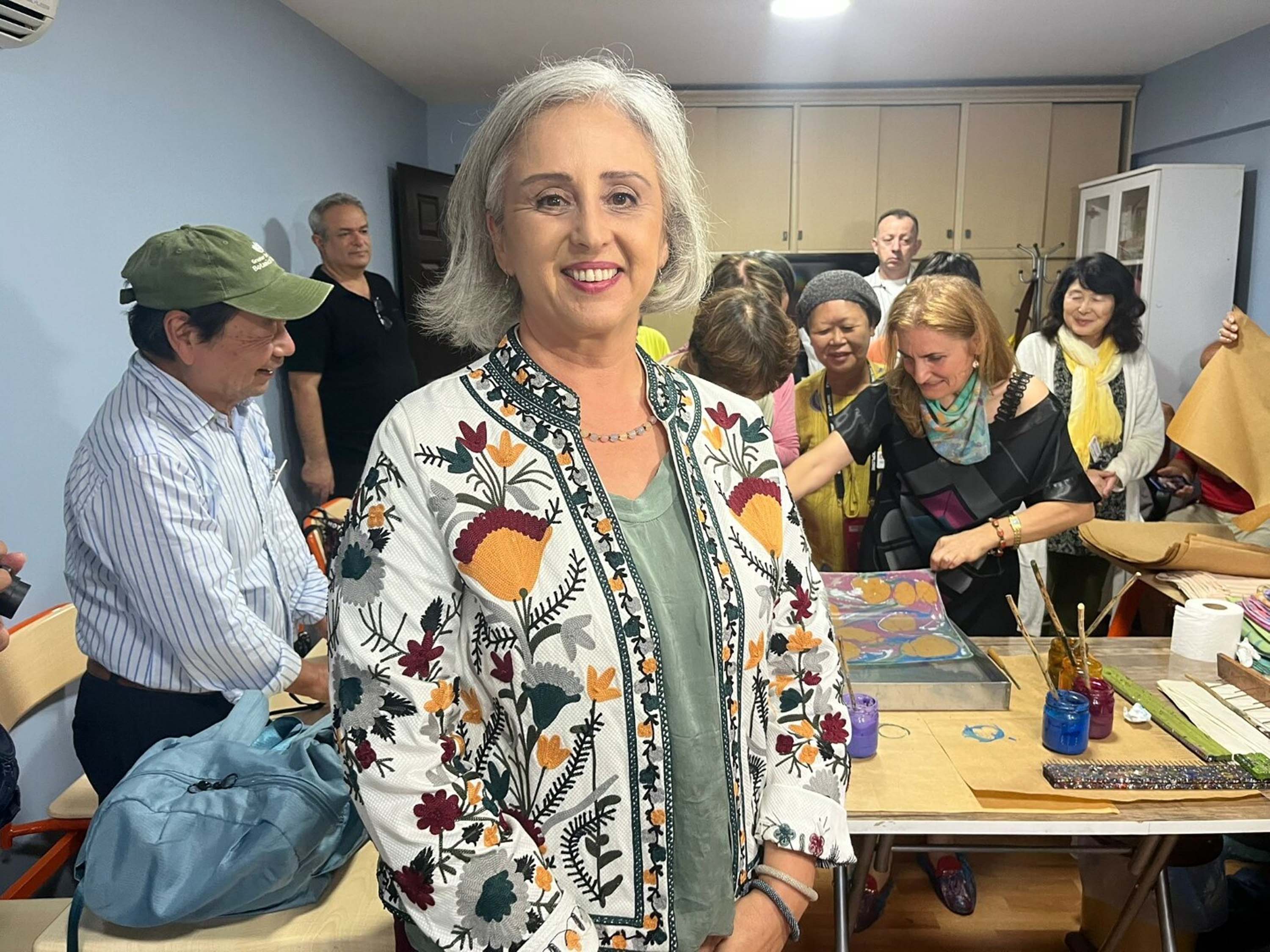 Çevre Yüksek Mühendisi ve Japonya İzmir Kültürler Arası Dostluk Derneği Başkanı Arzu Yücel, "Bugün Seferihisar Dostluk Derneği'nin Japonya'dan misafir ettiği aileler için birlikte bir ebru Atölyesi gerçekleştiriyoruz. Seferihisar Dostluk Derneği'nden aileler, evlerinde birer Japon aileyi misafir ediyor. Bugün konuklarımızla önce Kemeraltı'nı gezdik, ardından dernekte ebru sanatının tanıtımı yapıyoruz" dedi.