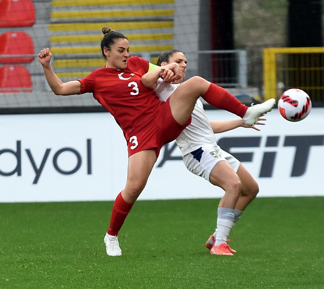 Türkiye-Kosova maçı salı günü saat 20.00'de başlayacak. Kadın millilerimiz İzmir'de son olarak yine Gürsel Aksel Stadı'nda 23 Şubat 2022'de 2023 FIFA Dünya Kupası elemelerinde H Grubu'nda Sırbistan'la karşılaşmıştı. (DHA)