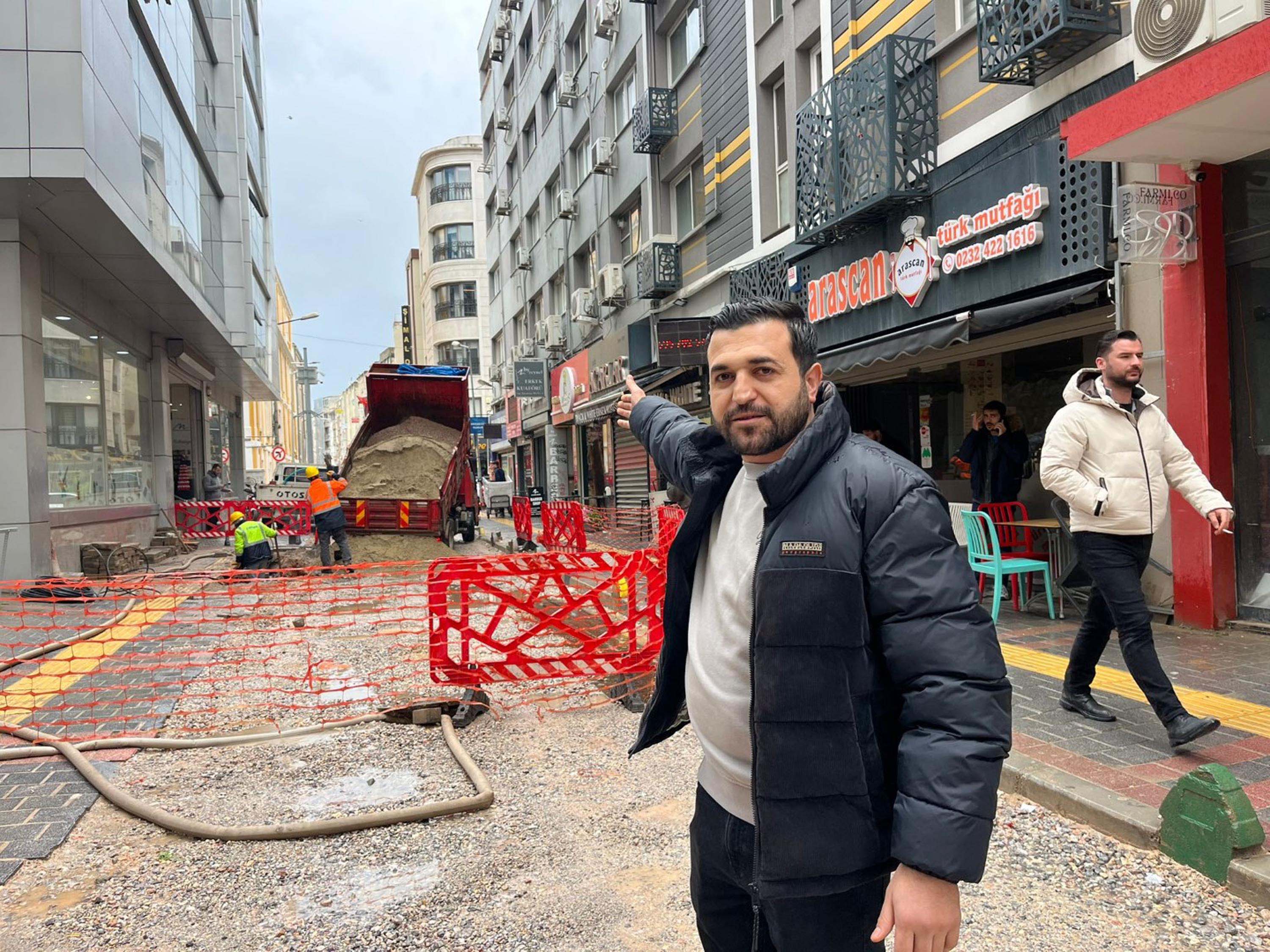 Bir diğer restoran işletmecisi Barış Aras, "25 yıldır burada esnafız. Şu yerlerin dili olsa da konuşsa, ‘yeter artık bizi kazmayın’ diye. Biz usandık. Arabamla gelemiyorum. Yolların hali çok perişan. Oy zamanı elimize pusulaları yerleştiriyorlar. 'Yol yapacağız, kaldırım yapacağız' demeyi çok iyi biliyorlar. Her gün Büyükşehir ve Buca Belediyesi'ne beddua etmekten çenem yoruldu" diye konuştu.