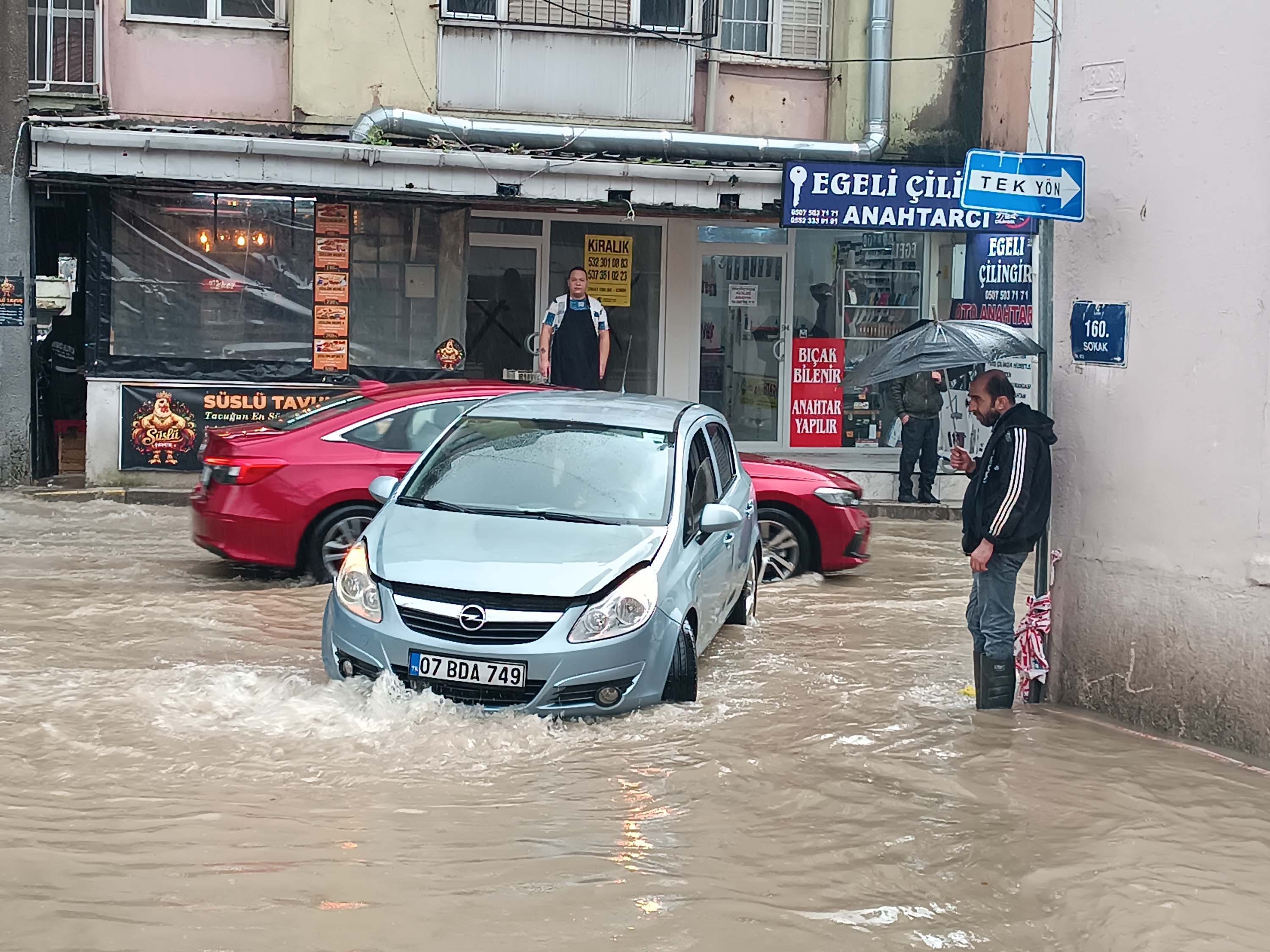 Öte yandan, sağanağın olumsuz etkilediği ilçelerden biri de Buca oldu. Adatepe Mahallesi'nde yağmur nedeniyle tıkanan bazı mazgallar taştı. Taşan mazgal nedeniyle suyla dolan 160 Sokak'ta, kadın sürücü, kullandığı 07 BDA 749 plakalı otomobiliyle mahsur kaldı. Sürücünün yardımına çevredekiler yetişti.