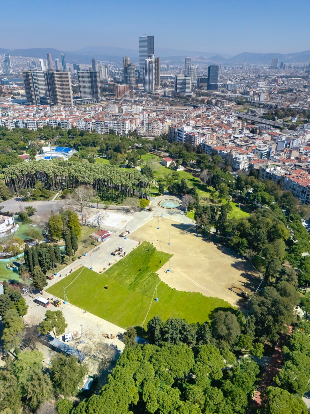Atlas Pavyonu’nun yanında bulunan 4 bin 300 metrekarelik beton alanın ağaçlandırılmasının ardından lunapark alanının da dönüşümü için çalışmaların başladığını söyleyen Başkan Tugay, “Eski lunapark alanını tamamen çimle kaplı, etkinliklerin düzenlenebileceği; çocuklarımızın ve ailelerimizin güvenle vakit geçirebileceği nitelikli bir alana dönüştüreceğiz. Kültürpark’ı tüm kentlilerin daha keyifle kullandığı bir yaşam alanına adım adım dönüştürüyoruz” ifadelerini kullandı.