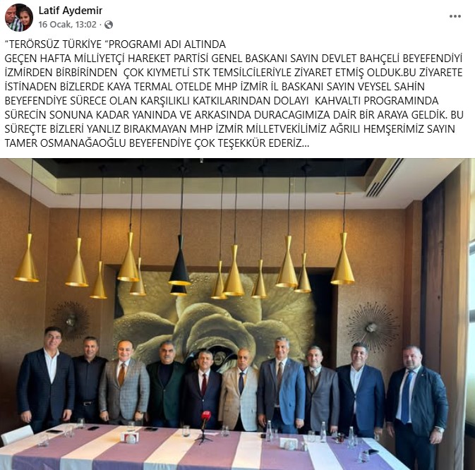 Ayrıca Aydemir’in son günlerdeki sosyal medya hesabında MHP İzmir İl Başkanı Veysel Şahin ve MHP Genel Sekreter Yardımcısı ve İzmir Milletvekili Tamer Osmanağaoğlu ile fotoğraflar paylaşmış ve MHP Genel Başkanı Devlet Bahçeli’yi makamında ziyaret etmişti.