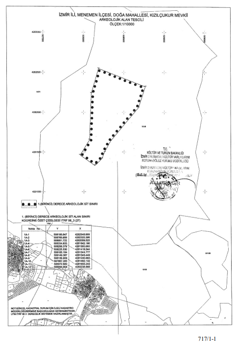 Kurul kararı, Menemen ilçesi Doğa Mahallesi 101 ada 9 parsel numaralı taşınmazı kapsıyor. Alanda yapılan incelemelerde mezar yapıları, büyük taş bloklar ve seramik parçaları tespit edildiği belirtildi.