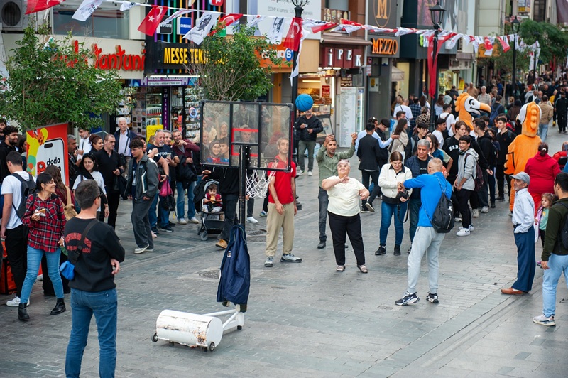 Her yaştan vatandaşı spora teşvik etmek için yıl boyunca çalışmalarını sürdüren Karşıyaka Belediyesi, kent yaşamına dinamik bir dokunuş daha yaptı. Karşıyaka Çarşısı’ndaki Hergele Meydanı’na yerleştirilen basketbol potası, gün boyu renkli anlara sahne oldu. Meydandan geçen vatandaşlar, eğlenceli atışlarla hem spor yaptı hem de keyifli vakit geçirdi.