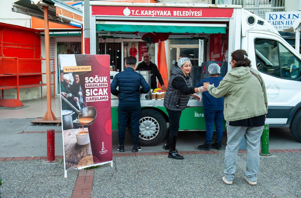 Karşıyaka Belediyesi, kış döneminde hafta içi her sabah işe veya okula gitmek için erken saatlerde yola çıkan vatandaşlar için yeni bir uygulamayı hayata geçirdi. Belediye Sosyal Hizmetler Müdürlüğü tarafından yürütülen uygulama kapsamında; ilçenin yoğun noktalarında sıcak çorba ikramına başlandı.