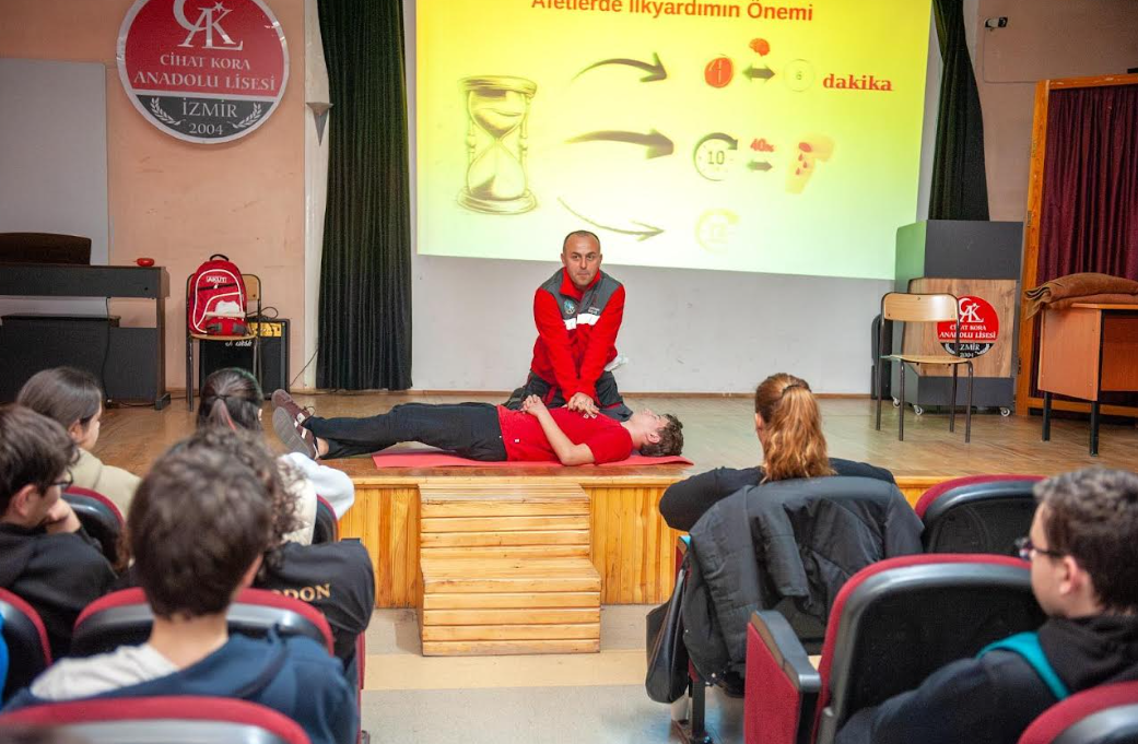 Solunum ve kalp durması gibi kritik durumlarda yapılması gereken müdahaleler ise tiyatral bir gösteriyle canlandırılarak öğrencilere uygulamalı eğitim verildi. Hafta boyunca devam eden etkinlikler kapsamında Karşıyaka 15 Temmuz Şehitler Anadolu Lisesi ve Havva Özişbakan Anadolu Lisesi öğrencileri de benzer eğitimler ile buluşturuldu.