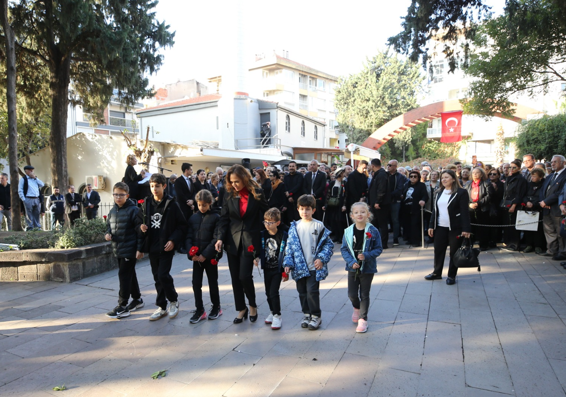 Karşıyaka Kaymakamlığı’nda düzenlenen törende de ilçe protokolü, gaziler, siyasi parti ve sivil toplum örgütlerinin temsilcileri, muhtarlar ve her yaştan vatandaşlar bir araya geldi. Karşıyaka Belediye Başkanı Yıldız Ünsal’ın da yer aldığı törende, saygı duruşu ve İstiklal Marşı’nın okunmasının ardından Atatürk Anıtı’na çelenkler bırakıldı. Karşıyaka Belediyesi, Zübeyde Hanım Anıt Mezarı’nda da bir anma töreni gerçekleştirdi. Karşıyaka Belediye Başkanı Yıldız Ünsal’ın ev sahipliğinde düzenlenen törene; Cumhuriyet Halk Partisi Karşıyaka İlçe Başkanı Levent Güçlü ve yönetimi, Karşıyaka Kent Konseyi Başkanı Dilek Karcı, belediye meclis üyeleri, sivil toplum kuruluşlarının temsilcileri ve vatandaşlar katıldı. Konuşmaların ardından Zübeyde Anne’nin mezarına kırmızı karanfiller bırakıldı.