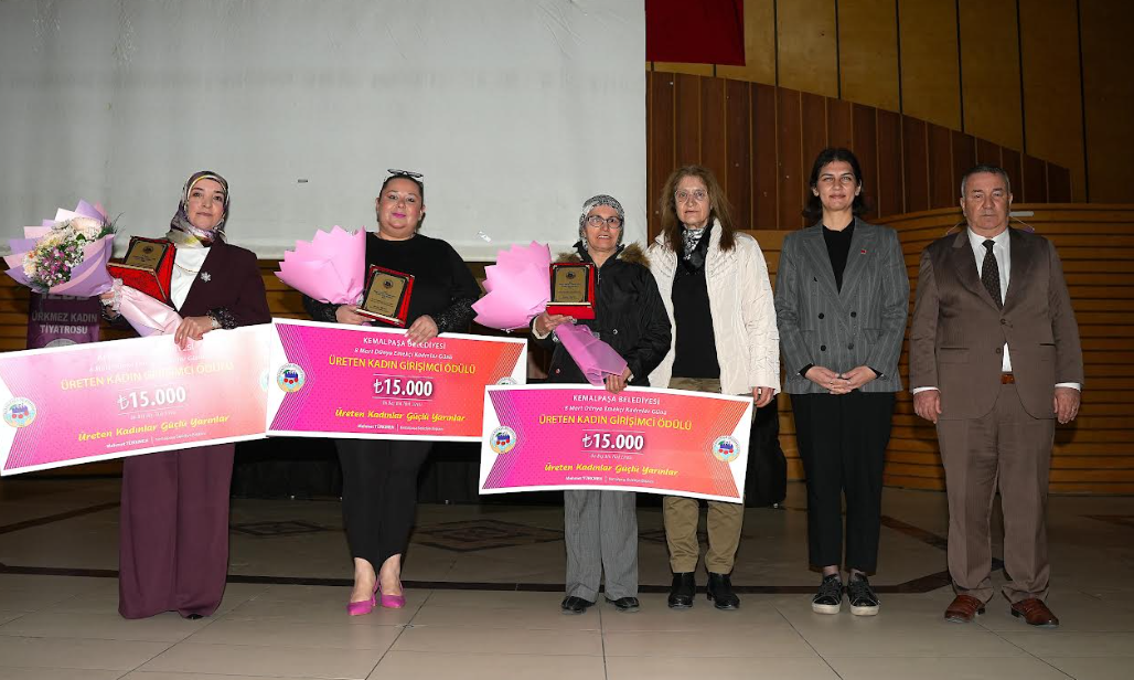 Kemalpaşa Belediyesi tarafından 8 Mart Dünya Emekçi Kadınlar Günü kapsamında “Üreten Kadın Girişimciler Ödül Programı ve Tiyatro Gösterimi” de gerçekleştirildi. Kemalpaşa Belediye Başkanı Mehmet Türkmen ise 8 Mart Dünya Emekçi Kadınlar Günü dolayısıyla Kemalpaşa Belediyesi’nde görev yapan emekçi kadınları ziyaret ederek karanfil takdim etti. “Kadınların emeği, toplumların geleceğini oluşturur” anlayışıyla hareket ettiklerini belirten Başkan Türkmen, Kemalpaşa’yı kadınlar için daha yaşanabilir bir yer haline getirmek için çalıştıklarını vurguladı.