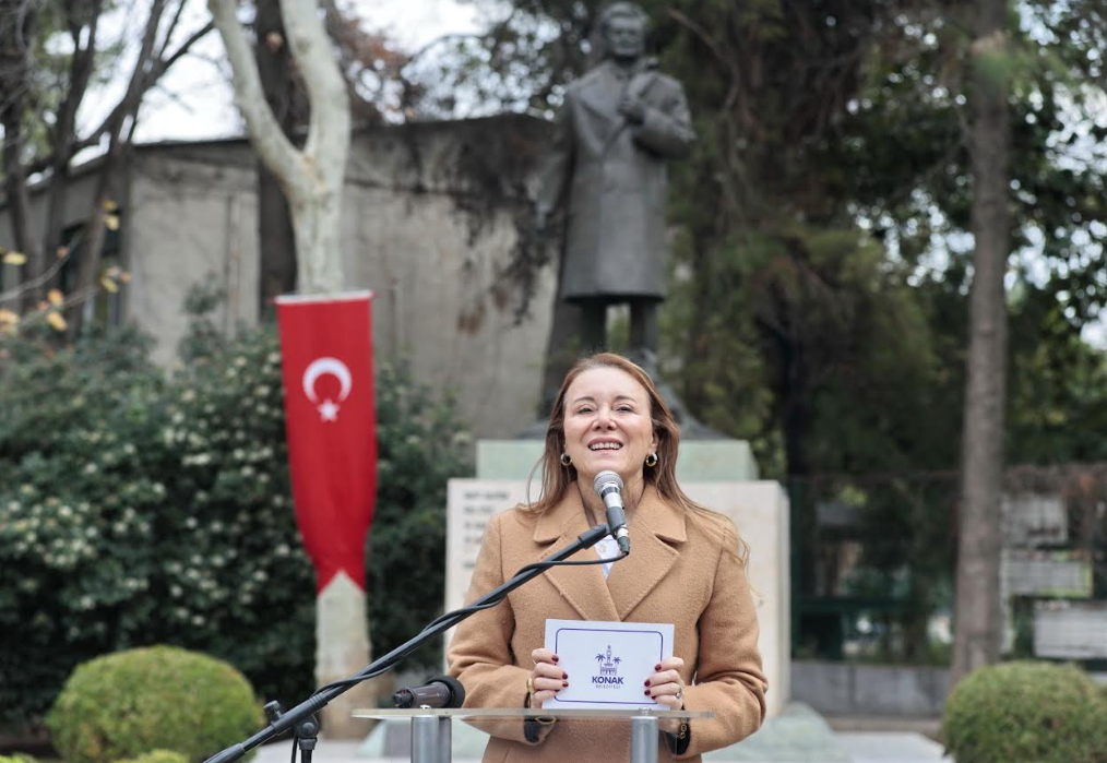 Anma töreninde konuşan Konak Belediye Başkanı Nilüfer Çınarlı Mutlu, tören alanındaki Nazım Hikmet heykelinin açılışında orada olduğunu ve o gün sanki Nazım Hikmet’in mezarı Türkiye’ye gelmişçesine onurlandıklarını anlattı. Nazım’ın umudunu ve mücadelesini örnek gösteren Başkan Mutlu, sözlerini şöyle sürdürdü: “Bugün, Konak’ta, bu anıtın başında, yeniden, Türkçenin en büyük şairlerinden Nazım Hikmet’i sizlerle birlikte anıyor olmak benim için çok kıymetli. Nazım Hikmet, barışın, memleket sevdasının, eşitliğin, eşit yurttaşlığın, adaletin sözcüsüydü. Onun dizeleriyle büyüdük. Pek çok şeyi onunla öğrendik. Şiirleri, aydınlanmamızı sağladı. İyi ki bu dünyadan Nazım Hikmet geçti, iyi ki onunla aynı ülkenin insanı olduk ve iyi ki bu şiirleri bize bıraktı. O umudunu hiç yitirmemişti, biz de yitirmeyelim. Ülkemizi içinde bulunduğu karanlıktan çıkarmak için umutla, dayanışmayla, omuz omuza mücadele etmeye devam edelim. Bugün hapiste olan pek çok dostumuz var. Bizim belediye başkanlarımız var, cumhurbaşkanı adayımız var, gazeteciler var. Onların mücadelesine biz de dışarıdan destek olalım. En kısa zamanda, hak ettiğimiz demokratik, çoğulcu, eşitlikçi bir ülke düzenine kavuşmak üzere…”