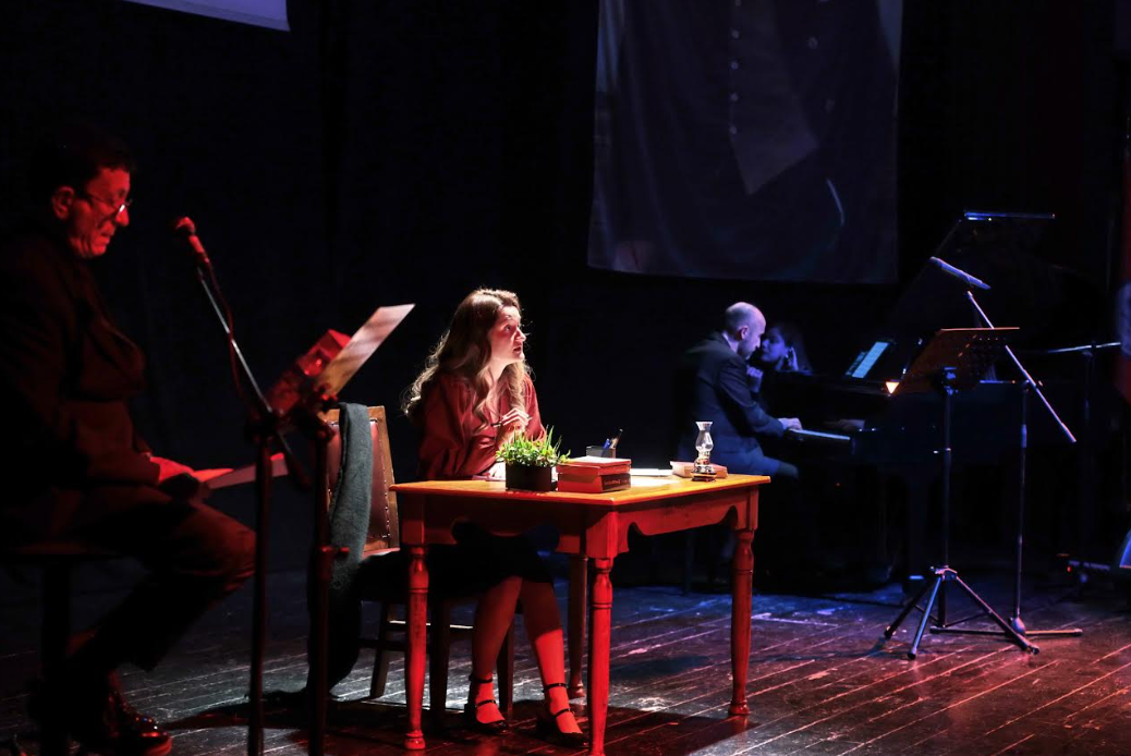 Uğur Sayınbatur piyano başında Nazım’ın bestelenmiş şiirlerini seslendirdi; gecenin solistliğini ise Deniz Aygün Araal yaptı.