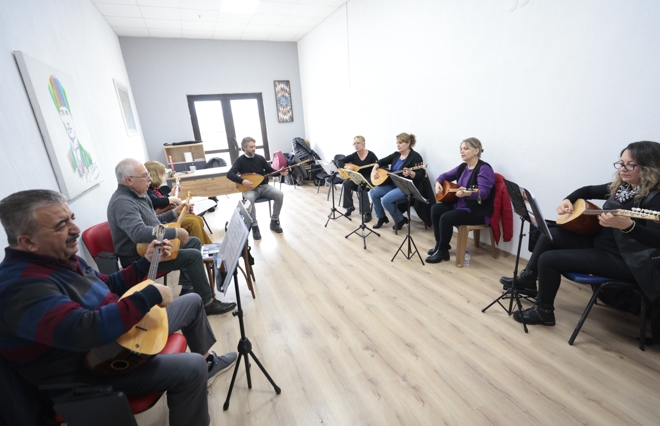 Konak Belediyesi’nin Toros Sosyal Tesisleri’nde devam eden Bağlama Kursu’nda sazın tellerini titreten kursiyerler yetenekleriyle göz doldurdu. Geçen yıl kasım ayından bu yana Ozan Ünal eğitmenliğinde bağlama dersi alan türkü sevdalısı öğrenciler, kaydettikleri ilerlemeyle de hayran bıraktı. Konak Belediyesi’nin başlattığı kursta bağlamanın yanı sıra bona ve solfej de öğrenen kursiyerler kendilerini ritim ve nota bilgisi konusunda da geliştirme fırsatı buldu. Anadolu’nun dört bir yanından türküleri hatasız icra eden kurs grubu, her ders yeni şeyler öğrenirken bir yandan da eğitim bitiminde verecekleri konserin hazırlıklarına devam ediyor.