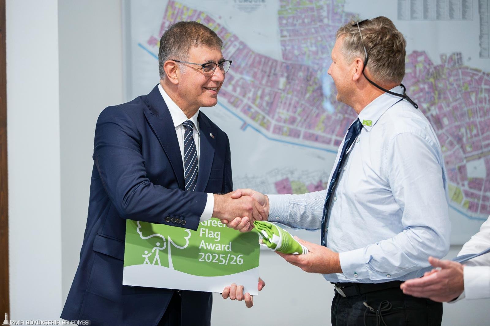 Bayrak takdiminde konuşan Başkan Dr. Cemil Tugay, “İzmir Büyükşehir Belediyesi olarak tarihimize ve mirasımıza sahip çıkmaya kararlıyız. Bu inanç ve sorumluluk duygusu, çalışmalarımıza yön veriyor. Bu yıl, Kültürpark’ta yürüttüğümüz yoğun çalışmaların sonucu olarak Yeşil Bayrak Ödülü’ne layık görülmenin onurunu yaşıyoruz. Gururluyuz, mutluyuz” ifadelerini kullandı.