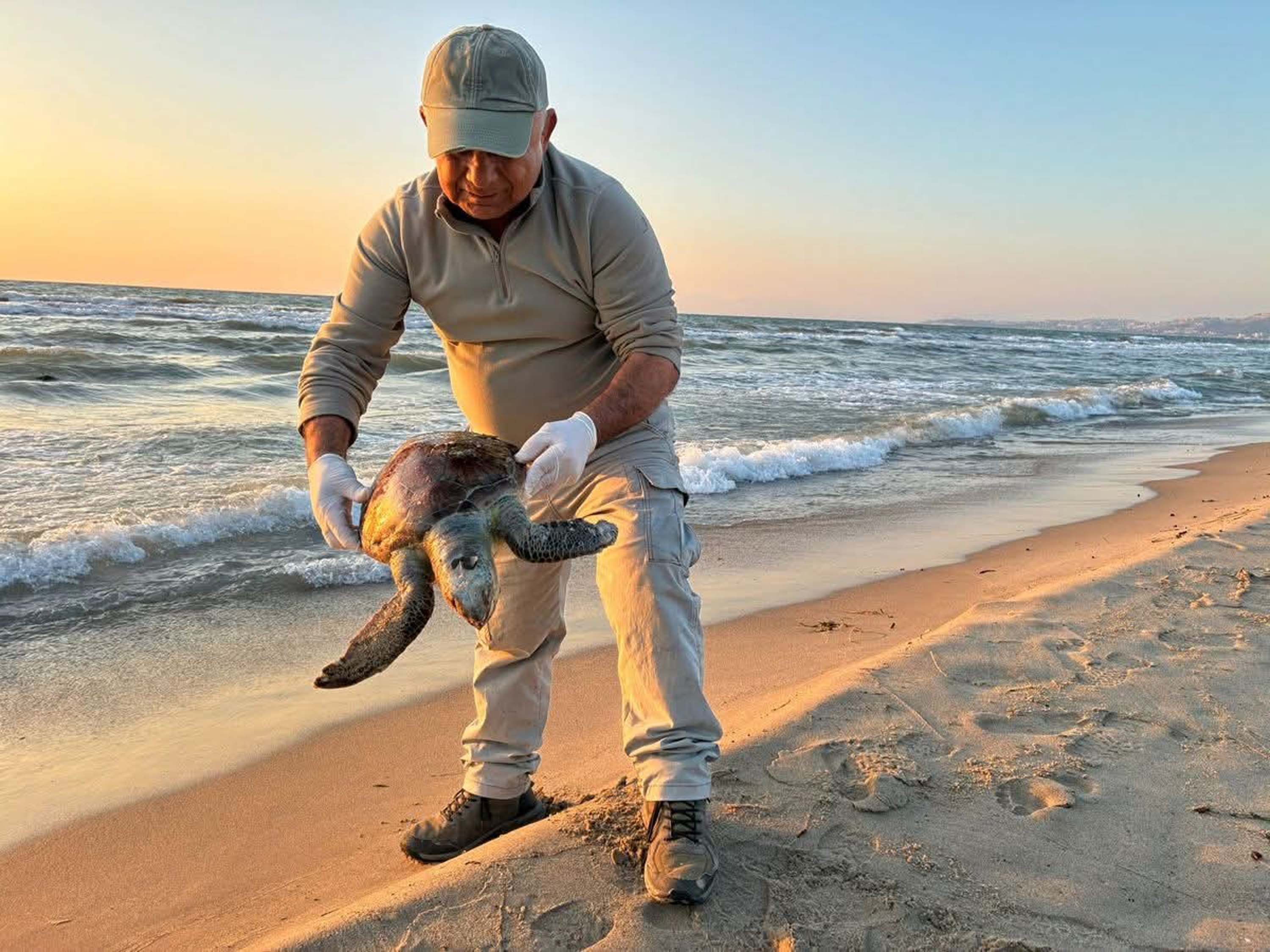 Kuşadası’nın Davutlar Mahallesi’ndeki Sevgi Plajı ile SGK plajında aynı gün farklı saatlerde vatandaşlar tarafından 3 deniz kaplumbağası ölü olarak bulundu. Durum EKODOSD yetkililerine bildirildi. EKODOSD yetkilileri tarafından yapılan incelemede ölü deniz kaplumbağalarından 2’sinin yeşil deniz kaplumbağası, 1’inin de caretta caretta olduğu belirlendi.