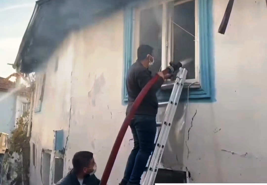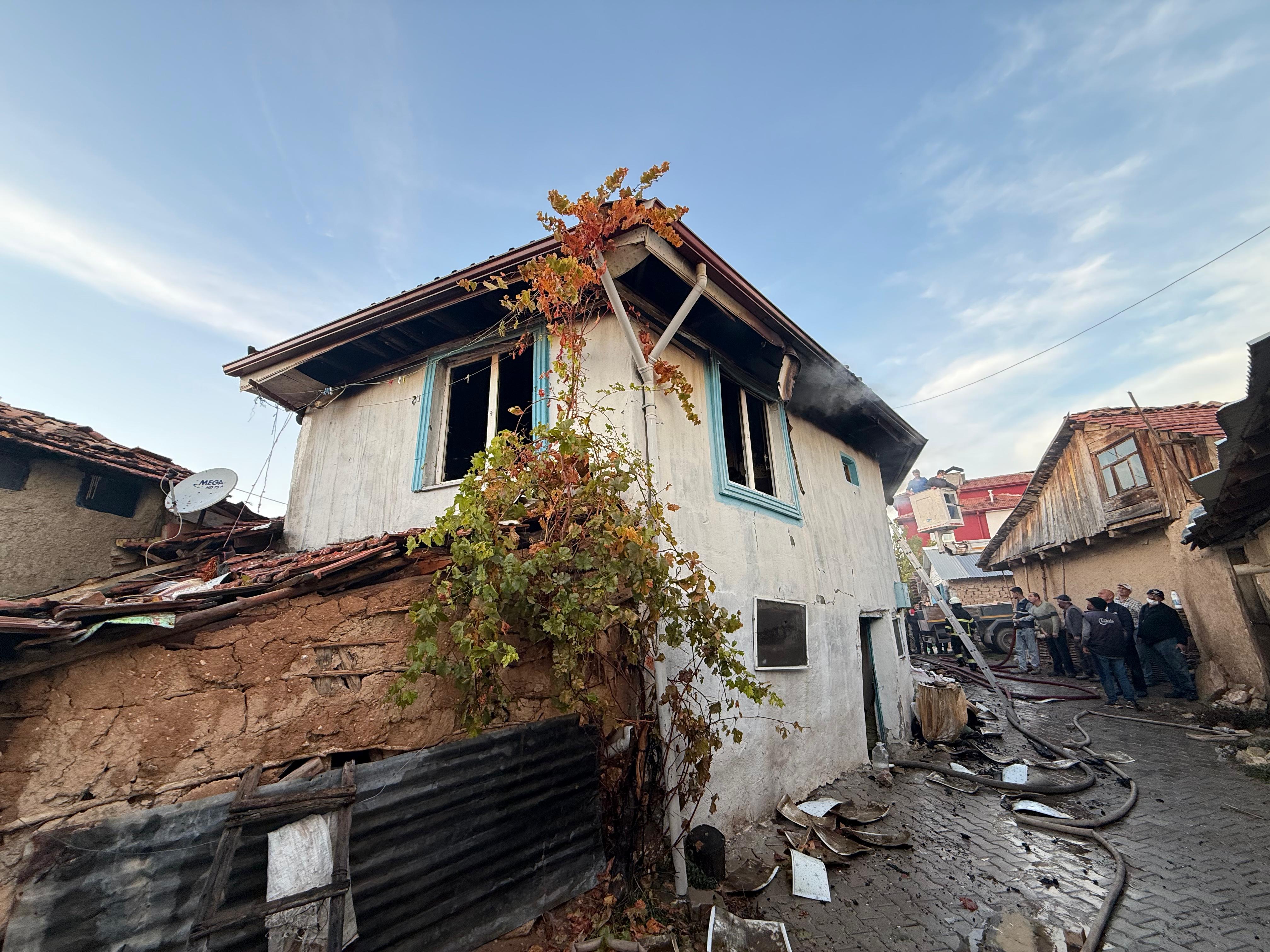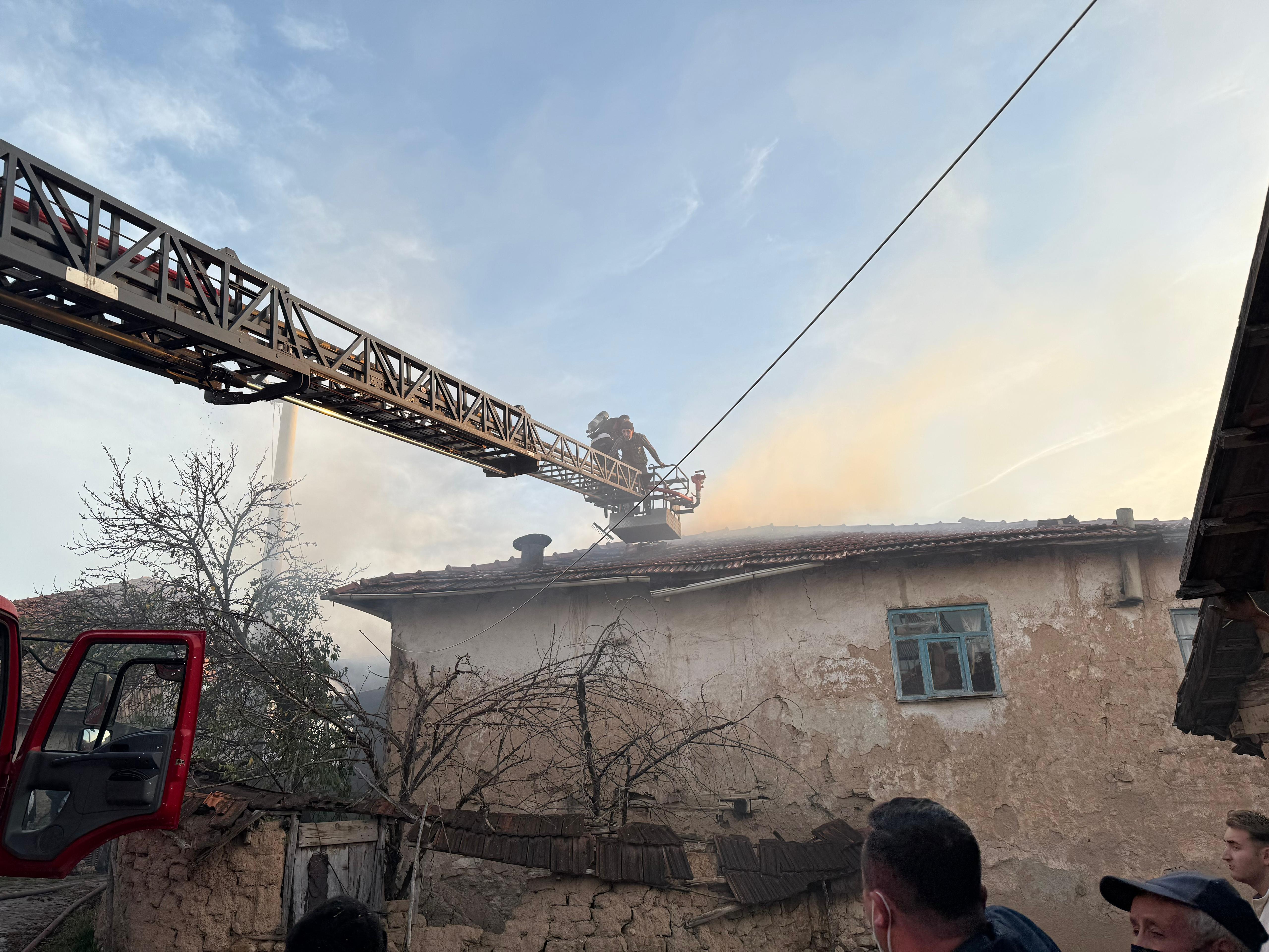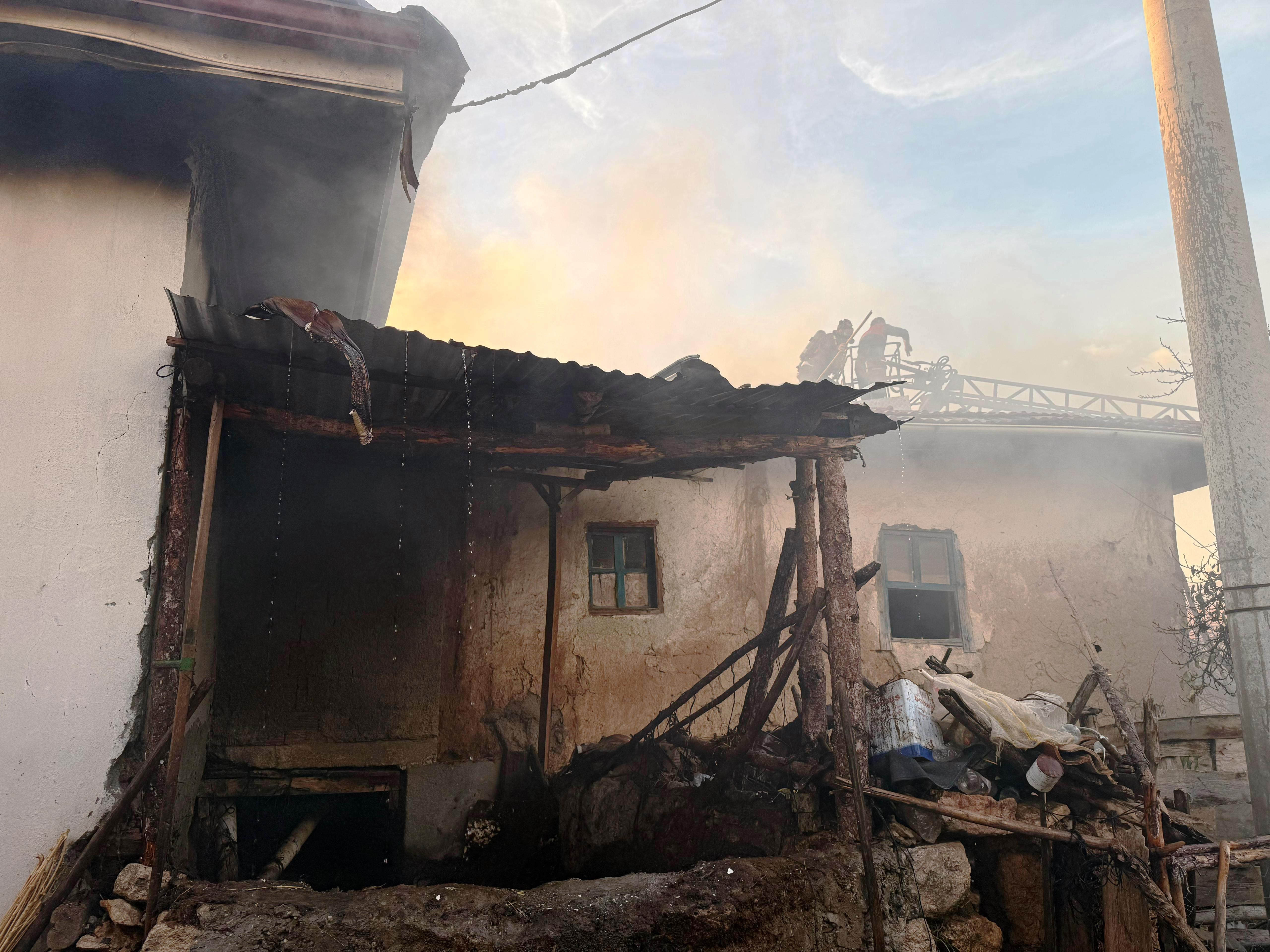 Yaşar K.’ya ait evde çıkan yangında hızla yayılan alevler önce ahıra ardından Hasan Hüseyin K.’ya ait eve sıçradı.