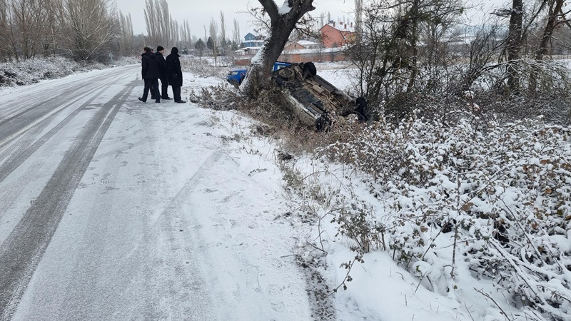 Yol kenarındaki ağaca çarpan minibüs ters döndü. Araçta bulunan 2 kişi kazayı yara almadan atlattı. Kazayla ilgili başlatılan soruşturma sürüyor. (DHA)