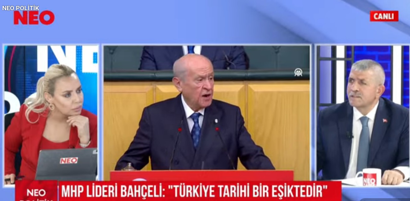 Neo Politik’te konuşan MHP İzmir İl Başkanı Veysel Şahin, Genel Başkan Devlet Bahçeli’nin başlattığı “asırlık birlik ve kardeşlik” çağrısının Türkiye’de yeni bir dönemi başlatacağını belirterek, “Bu defter kapanacak, Türkiye bölgesinin en güçlü devleti olacak. Yoksa parçalanacağız” dedi. İzmir Büyükşehir Belediyesi’ni de sert sözlerle eleştiren Şahin, “Çöpümüz alınmıyor, suyumuz akmıyor, körfez kokuyor. 93 katrilyon harcayıp kirada oturan belediye olur mu?” ifadelerini kullandı.