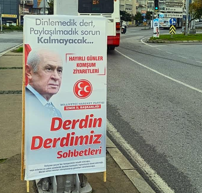 MHP İzmir İl Başkanlığı Genel Başkan Devlet Bahçeli’nin talimatlarıyla tüm yurtta uygulanacak olan yeni bir siyasi programa başlıyor. "Hayırlı Günler Komşum" Ziyaretleri ve "Derdin Derdimizdir' Sohbetleri adlı bu programlar İzmir’in otuz ilçesinde de uygulanacak. Programlar sadece komşu ziyaretleri ile sınırlı kalmayacak, Sivil Toplum Kuruluşları, meslek odaları ve esnaf ziyaretlerini de kapsayacak. Hazırladıkları programlar ile ilgili açıklama yapan MHP İzmir İl Başkanı Veysel Şahin, “otuz ilçe teşkilatımız, yerel yöneticilerimiz ve il yönetim kurulu üyelerimiz ile gerçekleştireceğimiz bu faaliyetlerin genel amacı milletimizi meydana getiren bütün sosyal dilimlerle bir araya gelmektir. Liderimizin talimatıyla gerçekleştireceğimiz bu çalışmalar bizi insanlarımızla buluşturacak ahenkli bir politik saha çalışması oluşturacaktır. Ziyaret ve sohbet iklimi toplumumuzun her kesiminden insanımızla buluşmamıza vesile olacaktır.” İfadelerini kullandı.