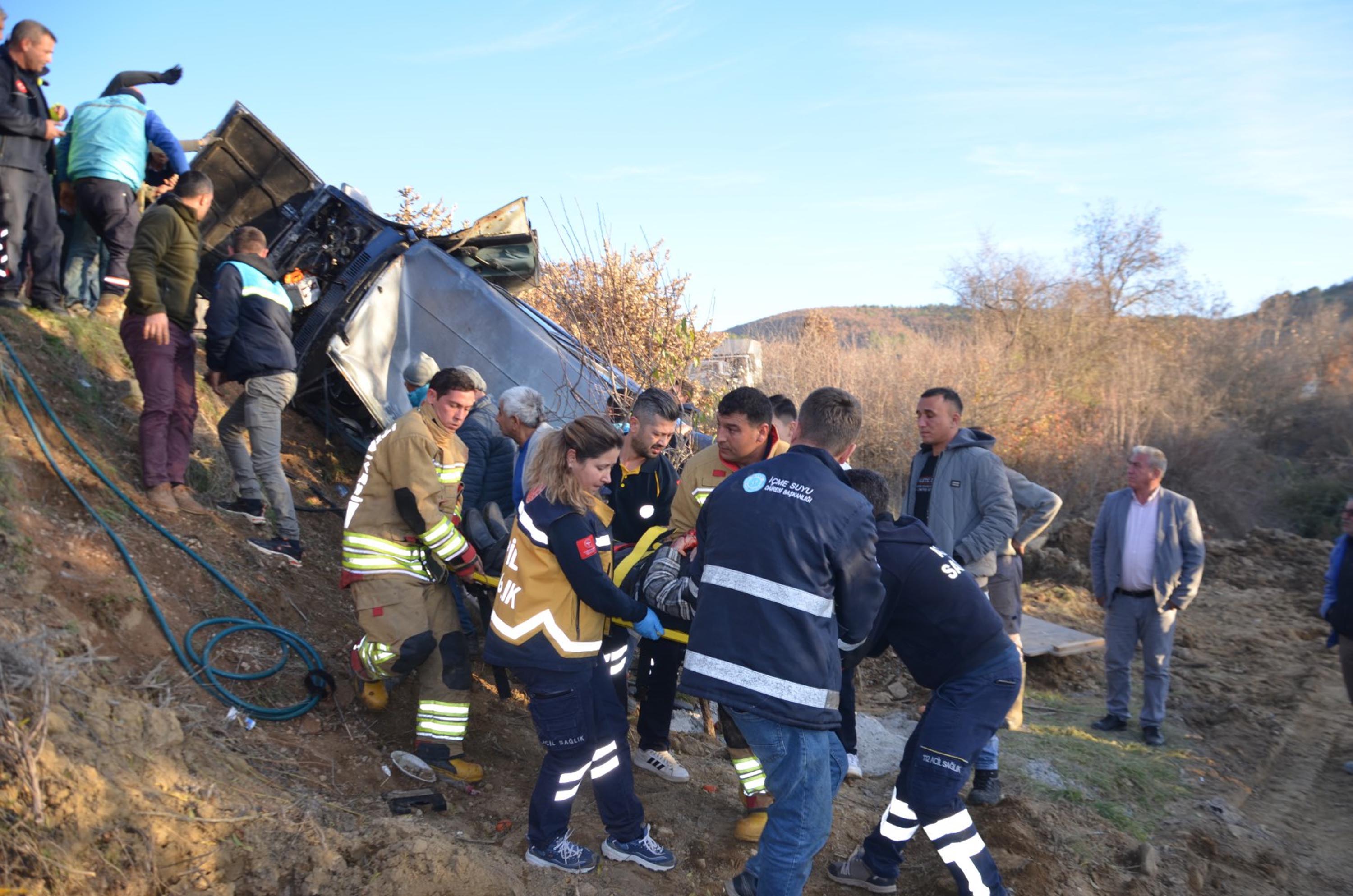 Çevredekilerin ihbarı üzerine olay yerine jandarma, sağlık ve itfaiye ekipleri sevk edildi. İtfaiye ekiplerinin 1 saatlik çaba sonucu otomobil sürücüsü sıkıştığı yerden çıkarıldı. Sağlık ekibinin ilk müdahalenin ardından Demirci Devlet Hastanesi'ne kaldırılan Eryiğit tedaviye alındı.