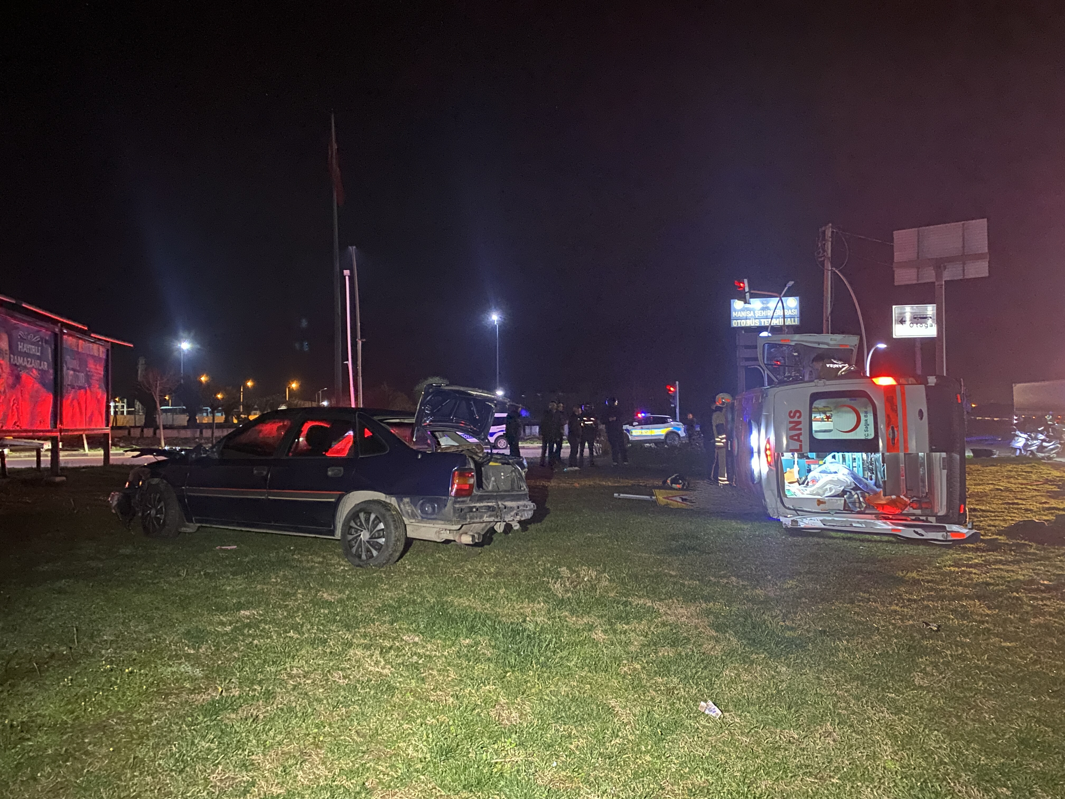 Kazanın şiddetiyle otomobil yoldan savrulurken, devrilen ambulans ise yan yatarak durabildi. Çevredeki vatandaşların ihbarı üzerine olay yerine çok sayıda polis ve sağlık ekibi sevk edildi.