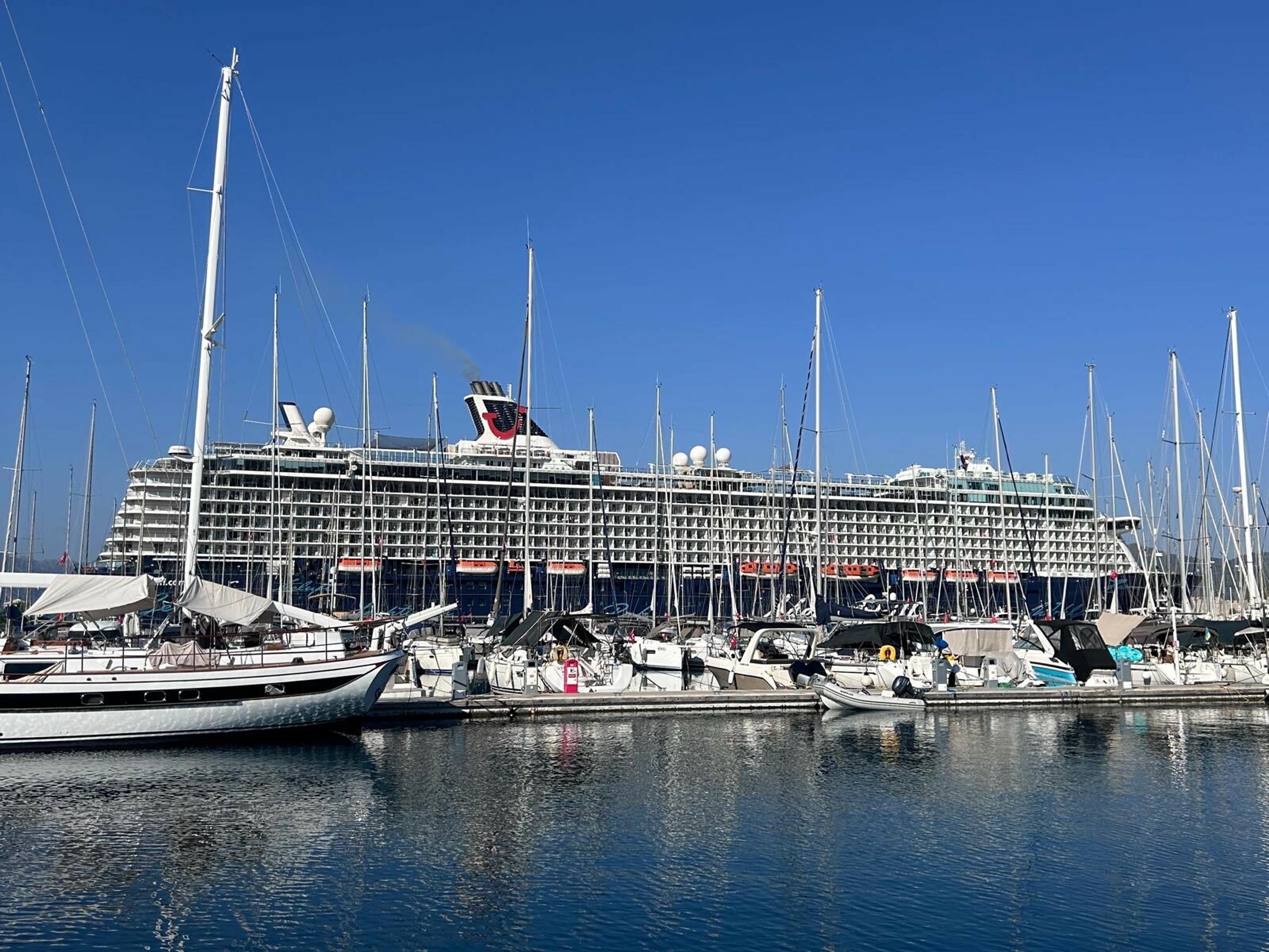 Malta bayraklı kruvaziyer gemisi 295,26 metre uzunluğunda ve 36,24 metre genişliğinde, Yunanistan'ın Rodos Adası'ndan bu sabah Marmaris'e geldi. 295,26 metre uzunluğundaki yolcu gemisi Marmaris Limanı'na demirledi.