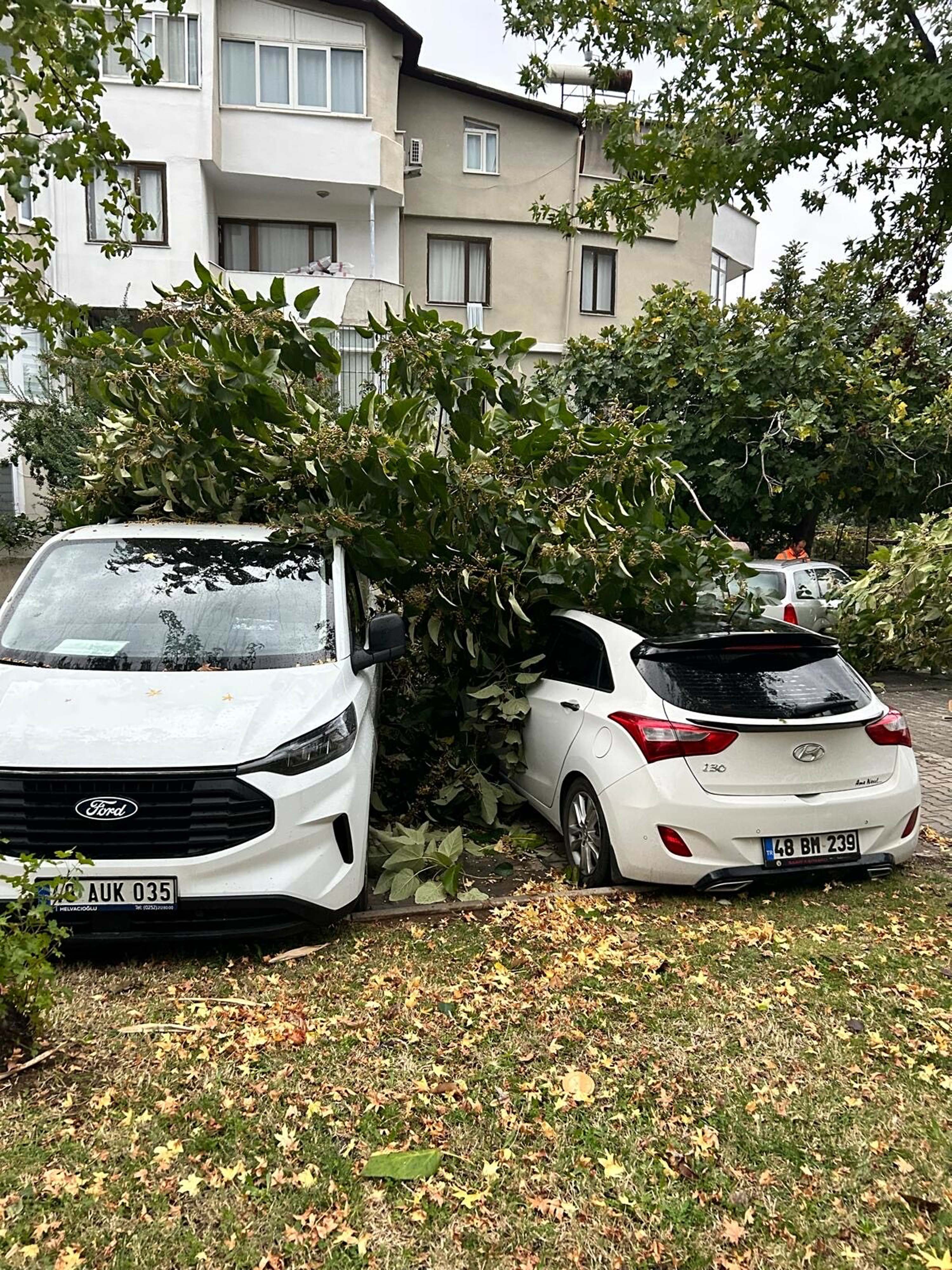 Ayrıca kuvvetli rüzgar nedeniyle ağaçlar, yollara ve park halindeki araçların üzerine devrildi. Araçlarda hasar oluşurken; ekipler, devrilen ağaçları kaldırmak için çalışma başlattı. (DHA)