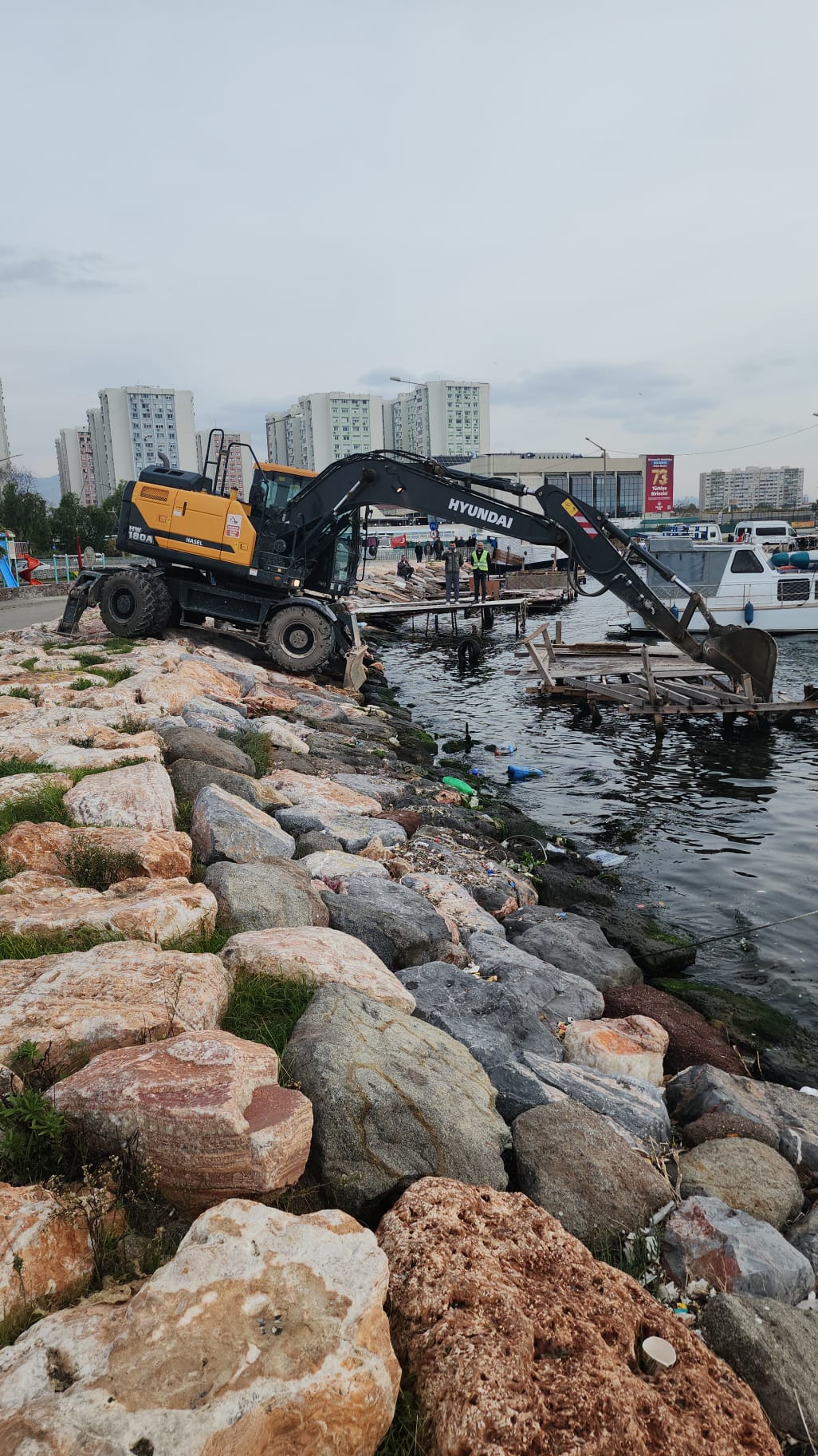 İzmir Büyükşehir Belediyesi Hemşehri İletişim Merkezi (HİM) ve Cumhurbaşkanlığı İletişim Merkezi’ne (CİMER) yapılan başvurular doğrultusunda, Bostanlı Balıkçı Barınağı ile Deniz Kafe arasında kalan kıyı bölümünde Kıyı Kanunu ve İmar Kanunu’nun ilgili yönetmeliklerine aykırı şekilde izinsiz yapılan platformlar ve ahşap iskeleler kaldırılıyor.