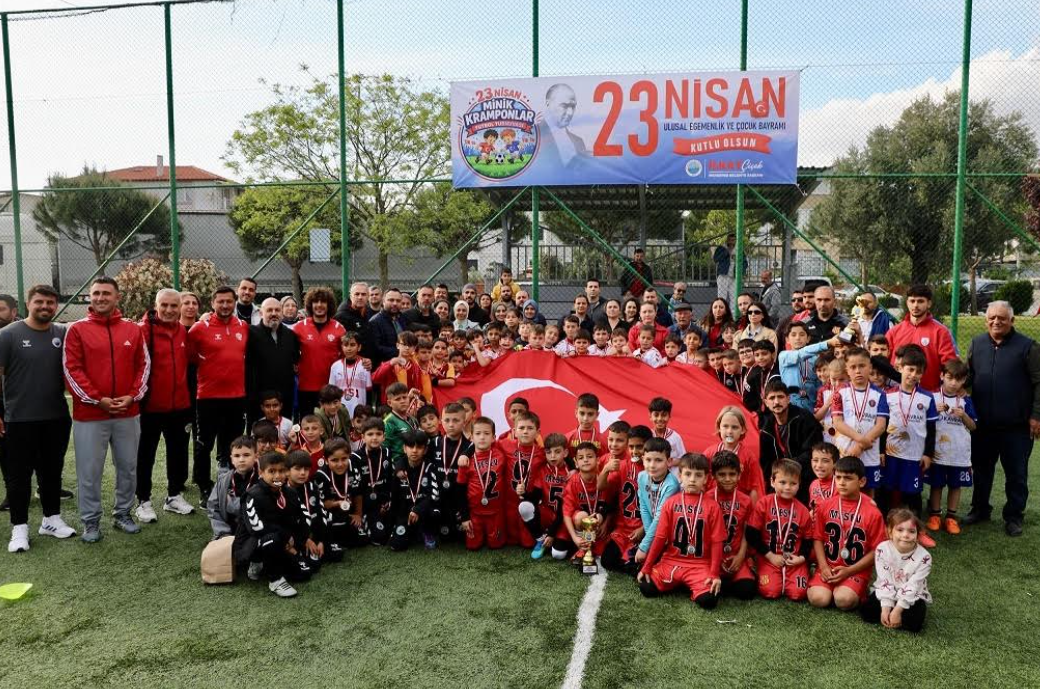 Menderes Belediyesi 23 Nisan Ulusal Egemenlik ve Çocuk Bayramı’na özel düzenlediği 23 Nisan Minik Kramponlar Futbol Turnuvası Şehit Fırat Yılmaz Çakıroğlu Spor Kompleksi’nde yapıldı. Menderes’te yer alan amatör spor kulüplerinin 2017 - 18 - 19 doğumlu minik takımlarının yer aldığı turnuva heyecanlı ve eğlenceli anlara sahne oldu. İki sahada aynı anda oynanan maçlar coşkuyu ikiye katladı. Çocuklarını destekleme gelen ailelerin heyecanları ve ateşli tezahüratları turnuvaya renk kattı. Ailelerin yanı sıra her yaştan yüzlerce vatandaş turnuvayı takip etti. Etkinlikte çocuklar için yüz boyama, resim stantları yer alırken mısır ve pamuk şeker de dağıtıldı.