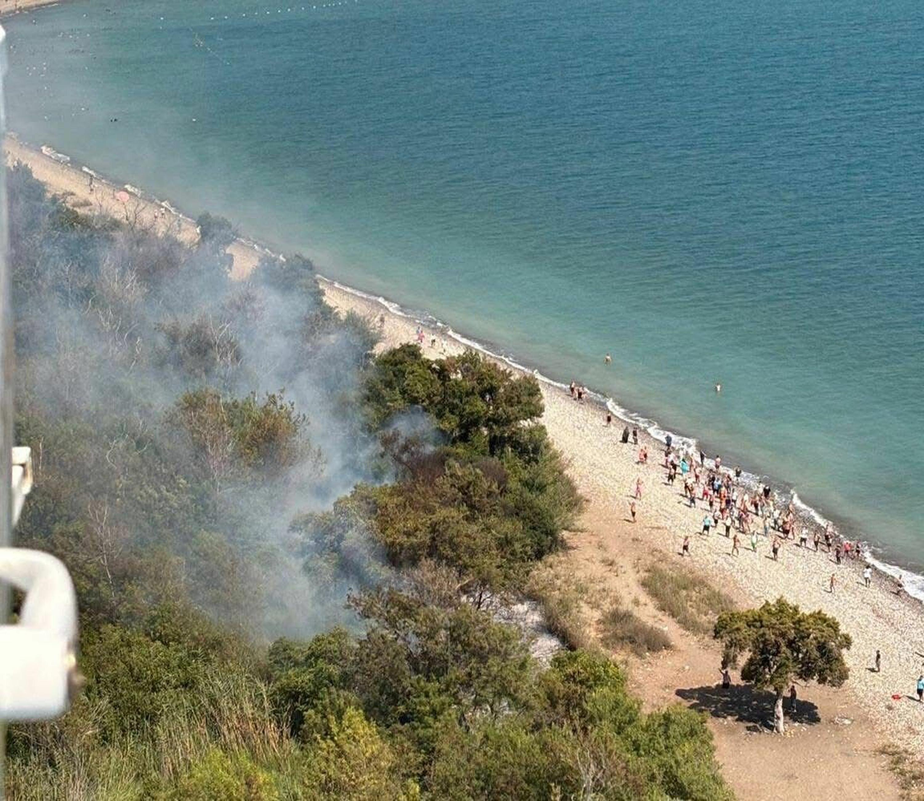 Yanan alanın yanı başındaki Akmaz Plajı'nda bulunan ve söndürme çalışmalarını endişeyle izleyenler, soğutma çalışmalarını tamamlayıp bölgeden ayrılan arazözleri alkışlarla uğurladı.