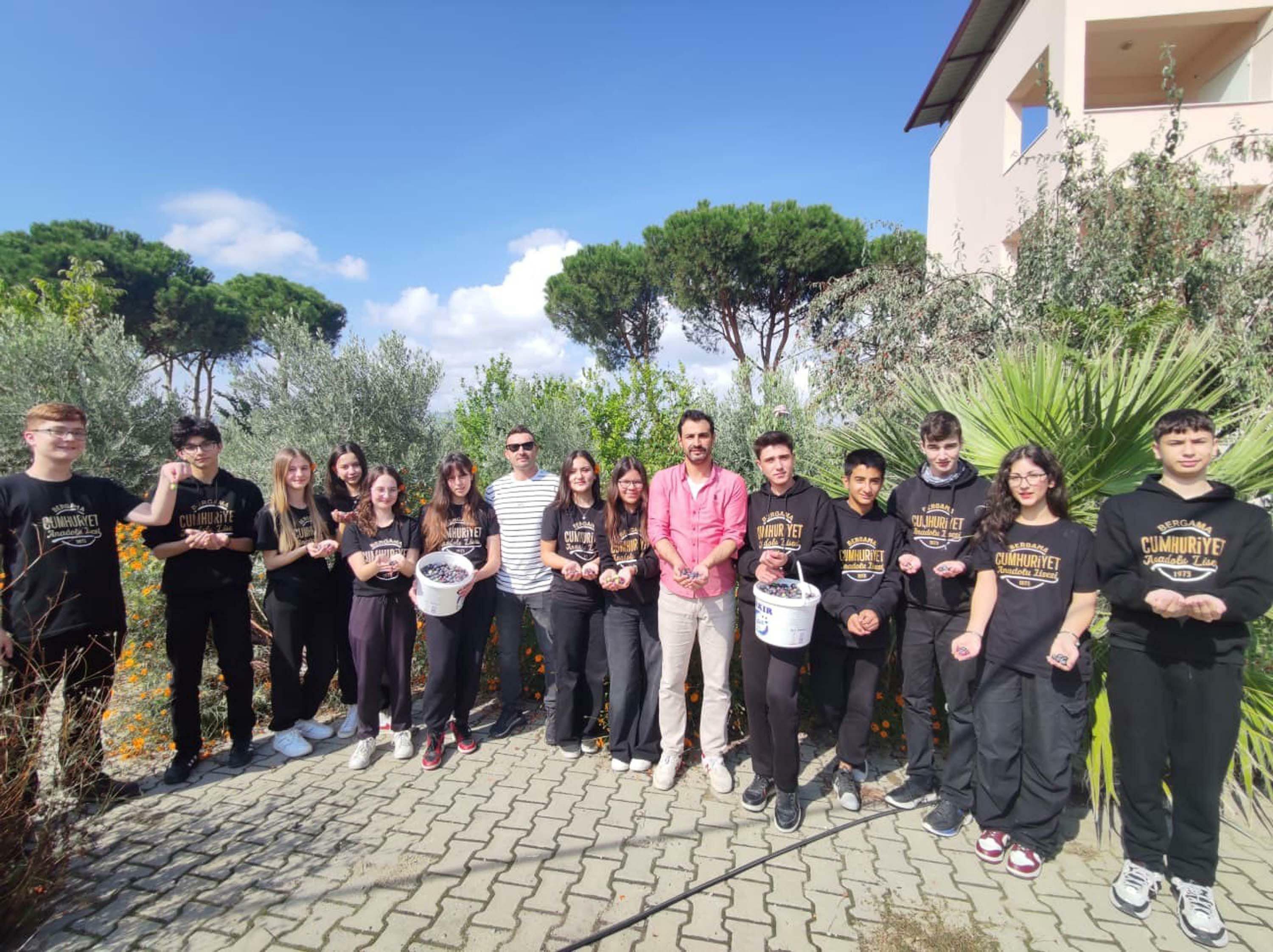 Lise öğrencileri ve öğretmenler, 5 yıl önce okul bahçesine dikilen zeytin ağaçlarının hasadını gerçekleştirdi. Öğrenciler, topladıkları zeytinleri kışın kahvaltılarında tüketmek için kurdu.