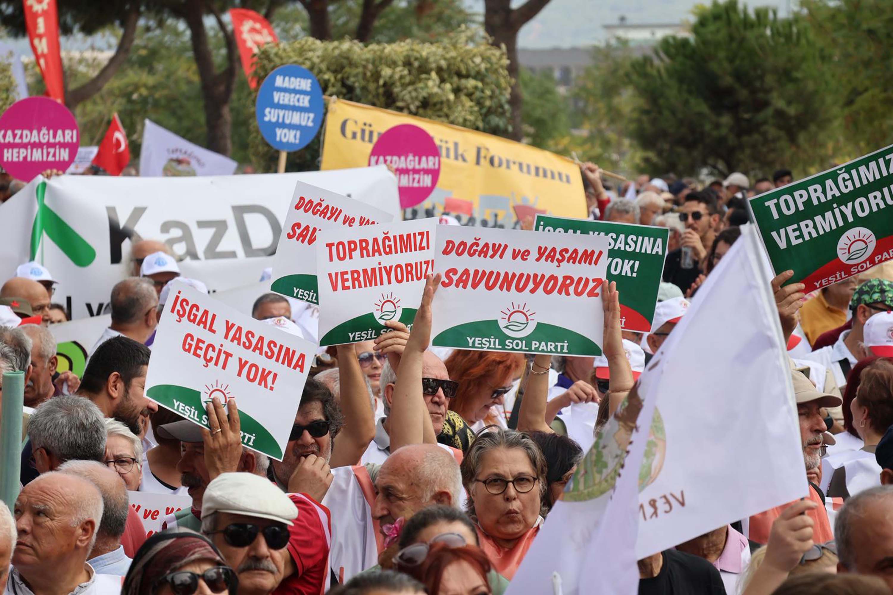 CHP lideri Özel, “Madene değil, madenciliğe değil, ama bu tarz vahşi madenciliğe, kamu yararı gözetmeyen gözü dönmüş madenciliğe sonuna kadar karşıyız. Doğayı değil, parayı önceleyen bir sistemin sonuna kadar karşısındayız. Biz kazanacağız. İyiler kazanacak, haklılar kazanacak, halk kazanacak, zeytin ağaçları kazanacak, doğa, çevre, mücadelemiz kazanacak. İyi ki varsınız. Buradan başladığım gibi bitiriyorum. Kurtuluş yok tek başına ya hep beraber ya hiçbirimiz. Hepinizi çok seviyoruz. Biz kazanacağız, siz kazanacaksınız" dedi. (DHA)
