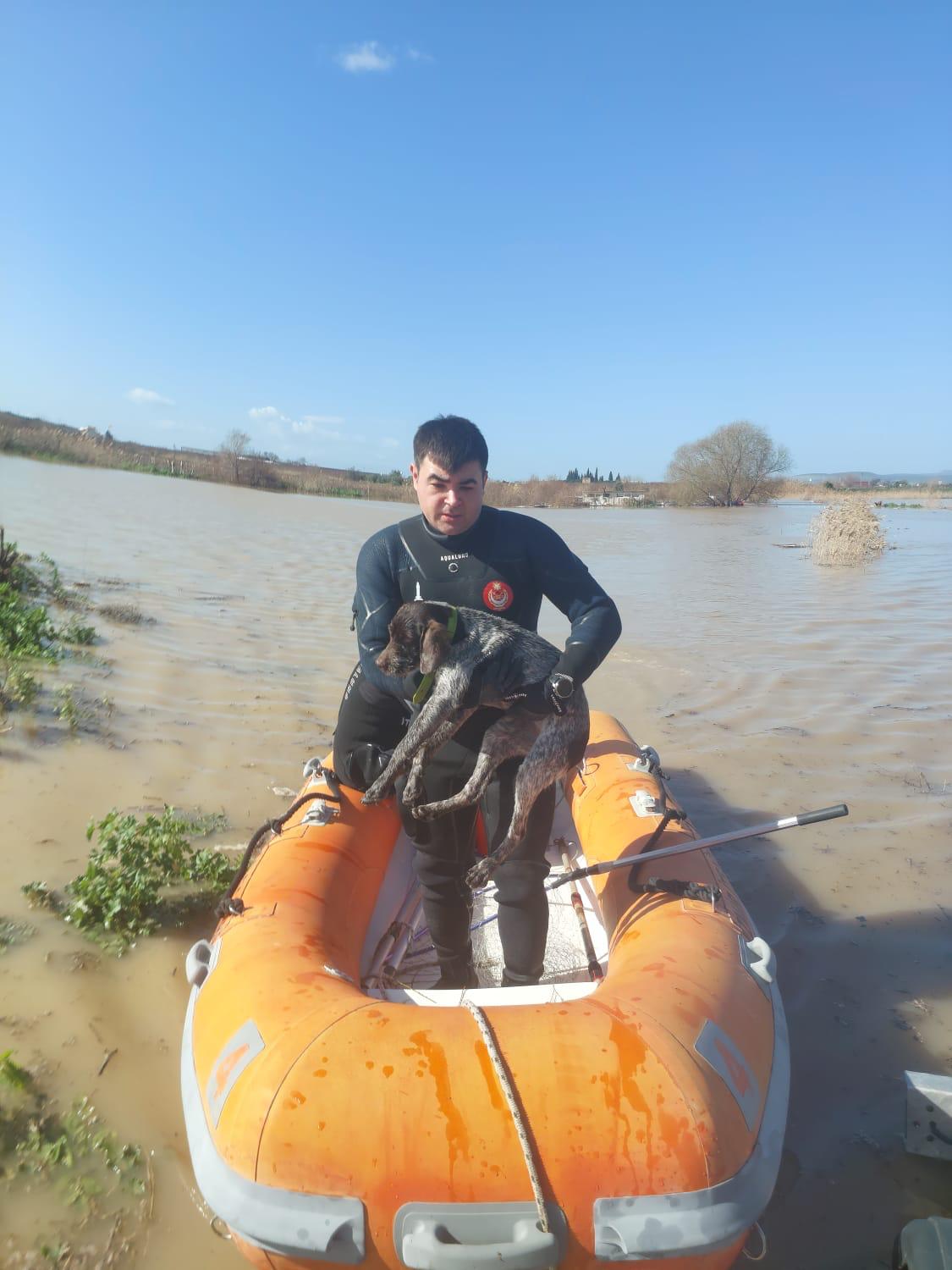 İzmir Büyükşehir Belediyesi İtfaiye Dairesi Başkanlığı ekipleri, Torbalı’nın Göllüce Mahallesi’nde sağanak yağış nedeniyle su basan bir ahırda mahsur kalan koyun ve tavukları kurtarmak için seferber oldu.