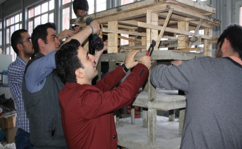Atatürk Üniversitesi (AÜ) Mühendislik Fakültesi İnşaat Mühendisliği Bölümü son sınıf öğrencileri yapıların depreme karşı güvenliğinin zayıf olmasına dikkat çekmek için 6 katlı binayı 10 kat küçültülerek orijinaline uygun model bina inşa etti.