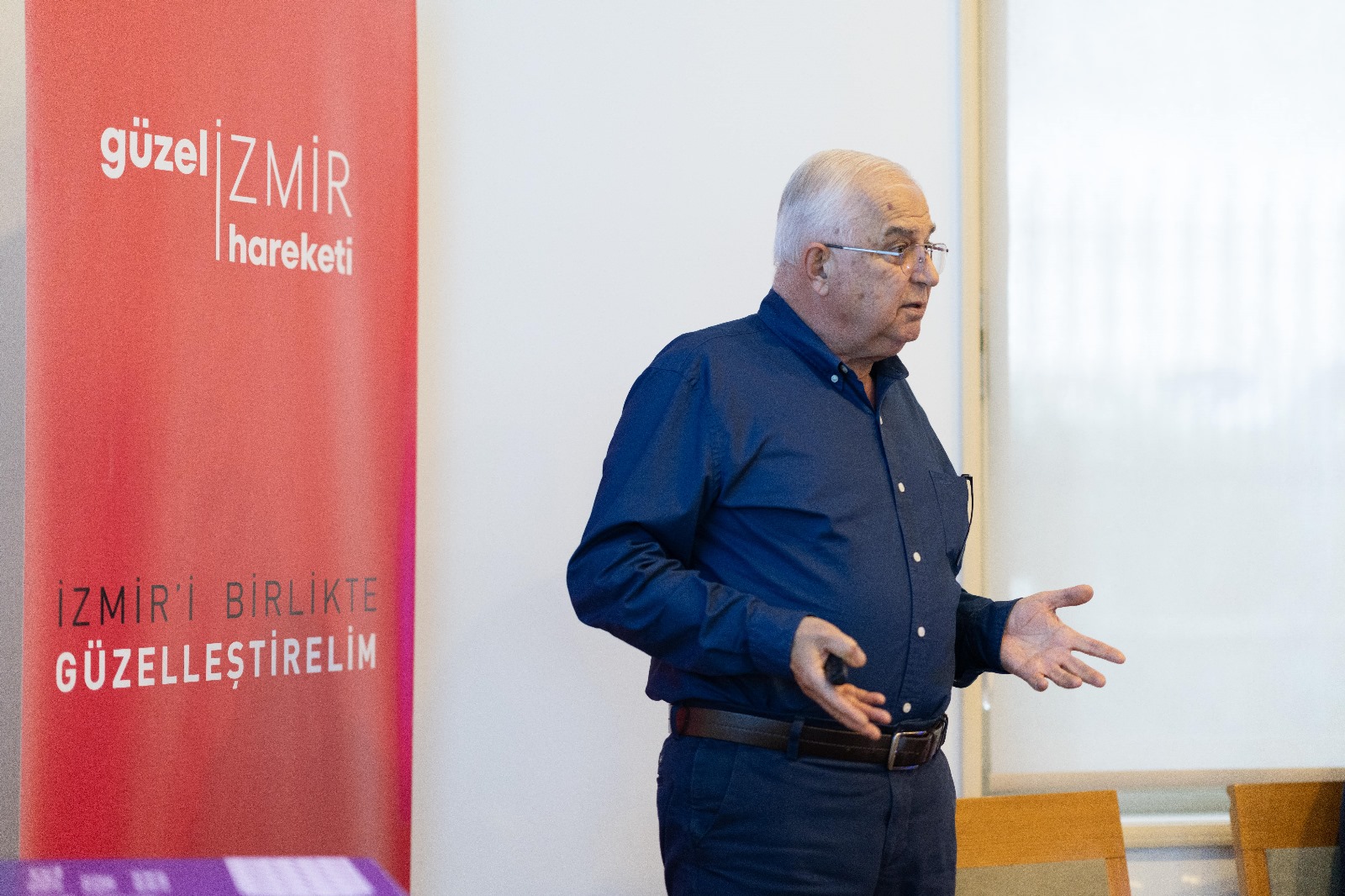 Yüksek mimar Salih Seymen de “Göl ve Ada Gazinosu’nun Mekânsal Serüveni” temasıyla sunum yaptı. Seymen, “Bu serüveni başlatan Behçet Uz’dur. Kültürpark’ı yokluktan yaratan bir belediye başkanı. Olanak hakikaten yok, ilk Kültürpark’ın duvarlarından başlıyorlar. O günlerde atlara verilecek arpa yok, halimiz bu ama Kültürpark yapılıyor. Çünkü modernizmin, kültürün, Batı’nın girişi İzmir. Kültürpark Batı’ya dönük ciddi bir eylem. Mimaride de İzmir öncü şehirdir. Fuar ve Kültürpark İzmir’i tarif eden ilk olgudur” ifadelerini kullandı.