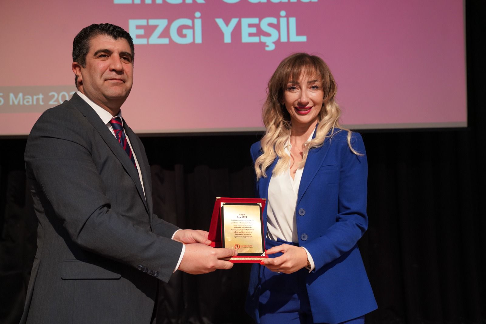 Geçtiğimiz yaz Seferihisar’da yaşanan yangın felaketinde yaptığı haberlerle takdir toplayan Ezgi Yeşil’e emek ödülü takdim edildi.
