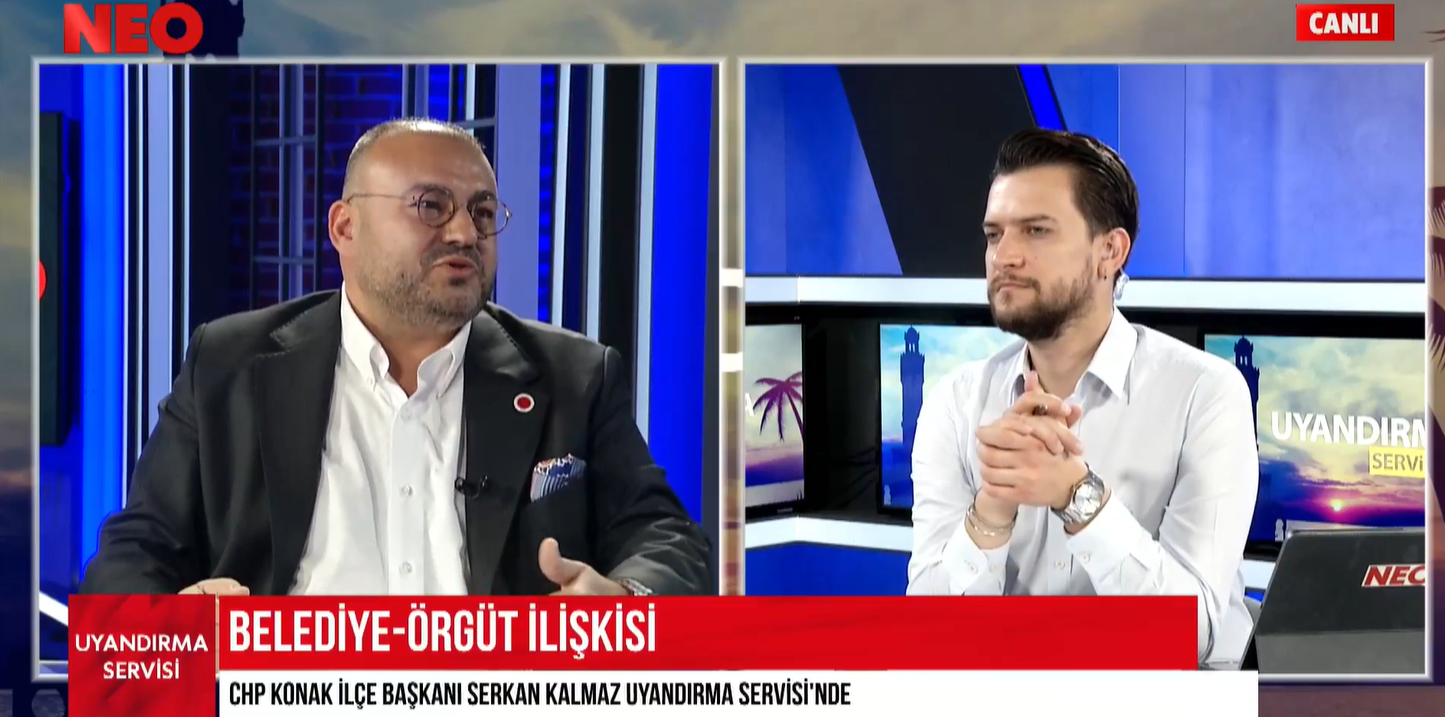 EGE POSTASI- Cumhuriyet Halk Partisi Konak İlçe Başkanı Serkan Kalmaz, NEO TV’de Kutluhan Nesil ile Uyandırma Servisi programına katıldı.