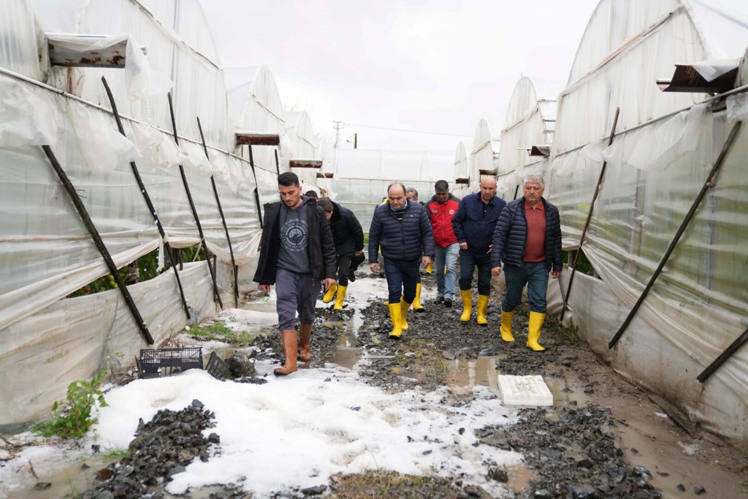 İlk belirlemelere göre yaklaşık 100 dönüme yakın seranın zarar gördüğü, dolu yağışı nedeniyle bazı ürünlerde de kayıplar oluştuğu belirtildi.