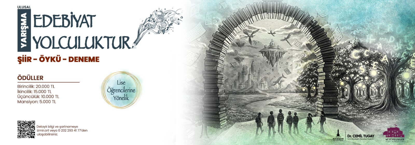 İzmir Büyükşehir Belediyesi Kültür ve Sosyal İşler Dairesi Başkanlığına bağlı Kütüphaneler Şube Müdürlüğü tarafından her yıl düzenlenen Uluslararası Edebiyat Festivali, bu yıl 9. kez edebiyatseverlerle buluşacak. “Edebiyat Yolculuktur” adıyla 17-19 Ekim tarihleri arasında gerçekleştirilecek festival kapsamında, çocuk ve gençlerin edebiyata ve okuma-yazmaya olan ilgisini artırmak, ulusal ve uluslararası yayınlara dair bilgi ve deneyim kazanmalarını sağlamak, festival adına kalıcı eserler bırakmak amacıyla “Yolculuk” temalı Şiir, Öykü ve Deneme Yarışması yapıldı. Ulusal düzeyde, lise hazırlık, 9, 10, 11 ve 12. sınıflara devam eden gençlerin katılımıyla gerçekleştirilen yarışmada, jüri tarafından 204 eser değerlendirildi. Her kategoride birincilik ödülü 20 bin TL, ikincilik ödülü 15 bin TL, üçüncülük ödülü 10 bin TL olacak. Mansiyon alan üçer yarışmacıya da 5 bin TL ödülün yanı sıra plaket ve kitap seti hediye edilecek. Eserler, 9. İzmir Edebiyat Festivali Antolojisi’nde de yayımlanacak.
