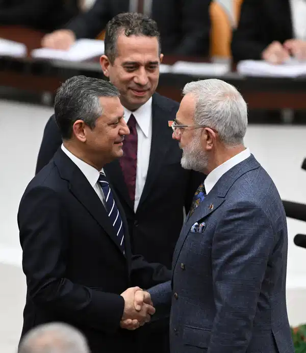 CHP Genel Başkanı Özgür Özel, MHP Genel Başkanı Devlet Bahçeli ve İYİ Parti Genel Başkanı Müsavat Dervişoğlu ile selamlaştı.