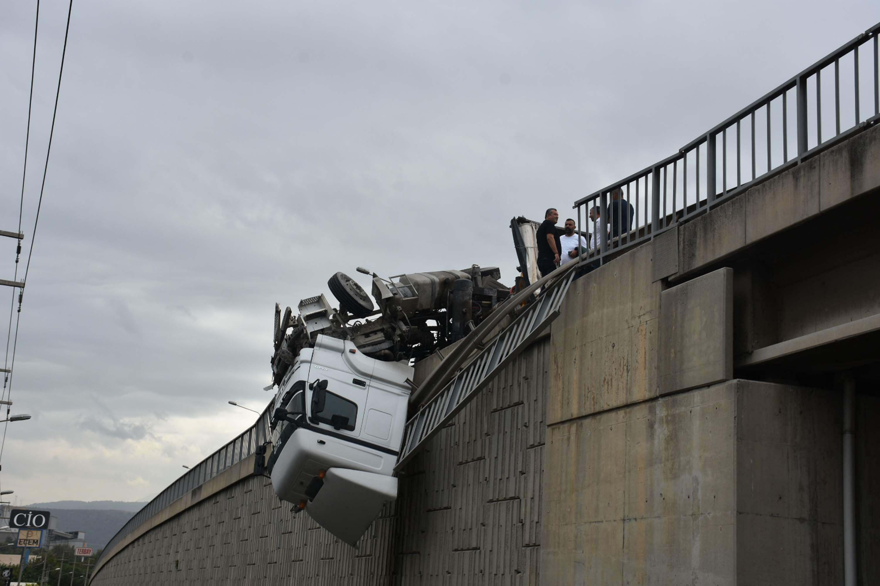 Kaza, 29 Eylül’de saat 10.00 sıralarında Ankara Caddesi 4 Sanayi Üst Viyadüğü'nde meydana geldi. Bornova'dan Alsancak Limanı yönüne giden İrfan Öngen'in (48) kullandığı 06 FGT 332 plakalı taş yüklü TIR, yağmur nedeniyle kayganlaşan yolda şoförünün direksiyon kontrolünü kaybetmesiyle devrildi. TIR'ın kupası viyadüğe asılı kalırken, şoför Öngen yaralandı.