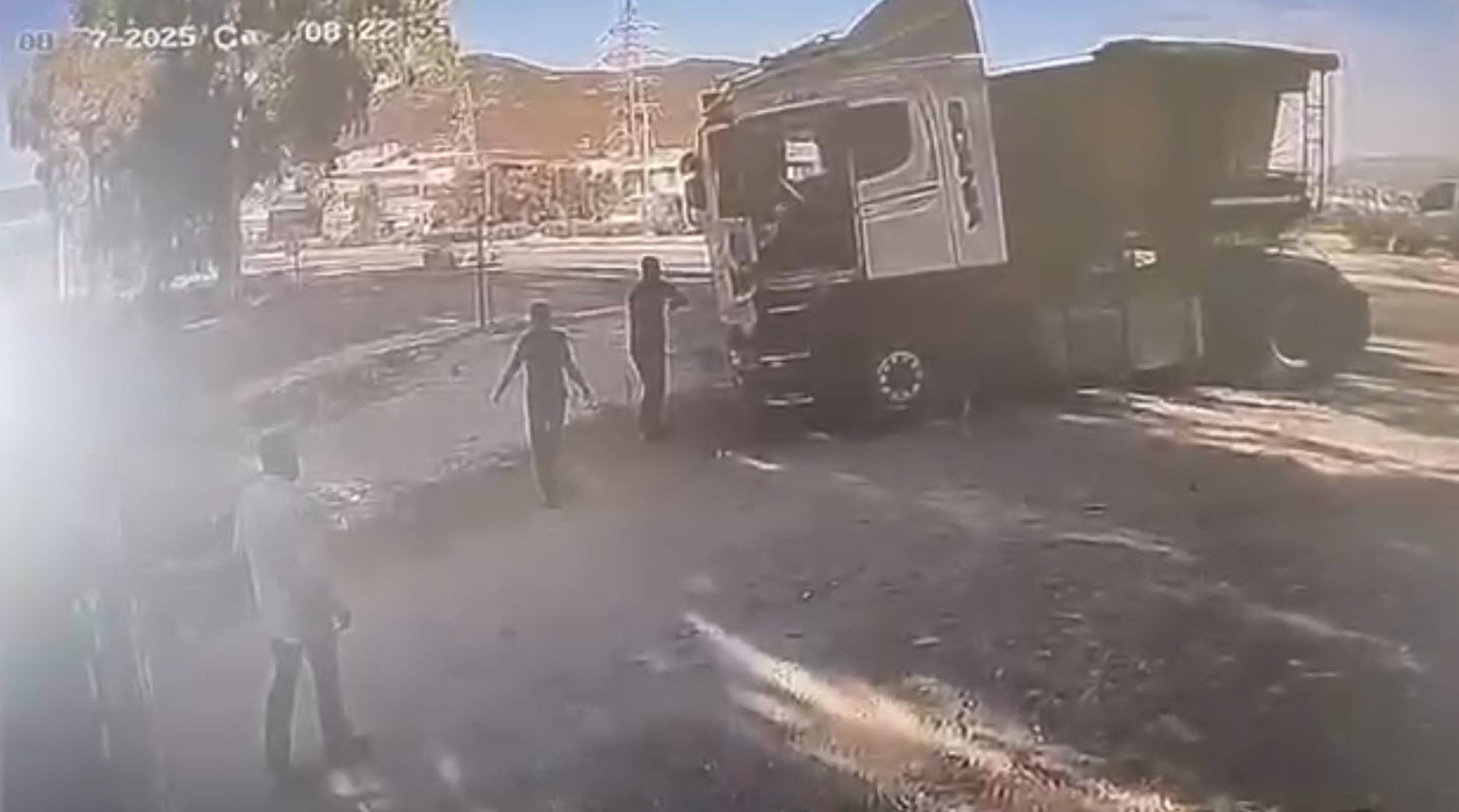TIR, yol kenarına çıkarak güçlükle durdu. Motosikletin sürücüsü ise hiçbir şey olmamış gibi yoluna devam etti. O anlar yakındaki bir iş yerinin güvenlik kameralarına yansıdı.