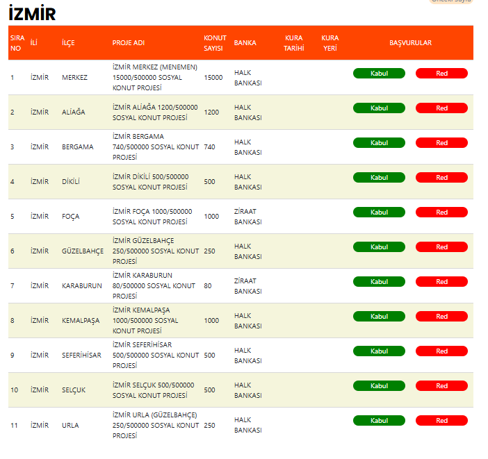 EGE POSTASI - İzmir’de TOKİ’nin 21 bin 20 konutluk projelerine başvuranların kura listesi yayımlandı. Başvuru yapanlar, TOKİ’nin resmi internet sitesinden isimlerini kontrol edebilecek.