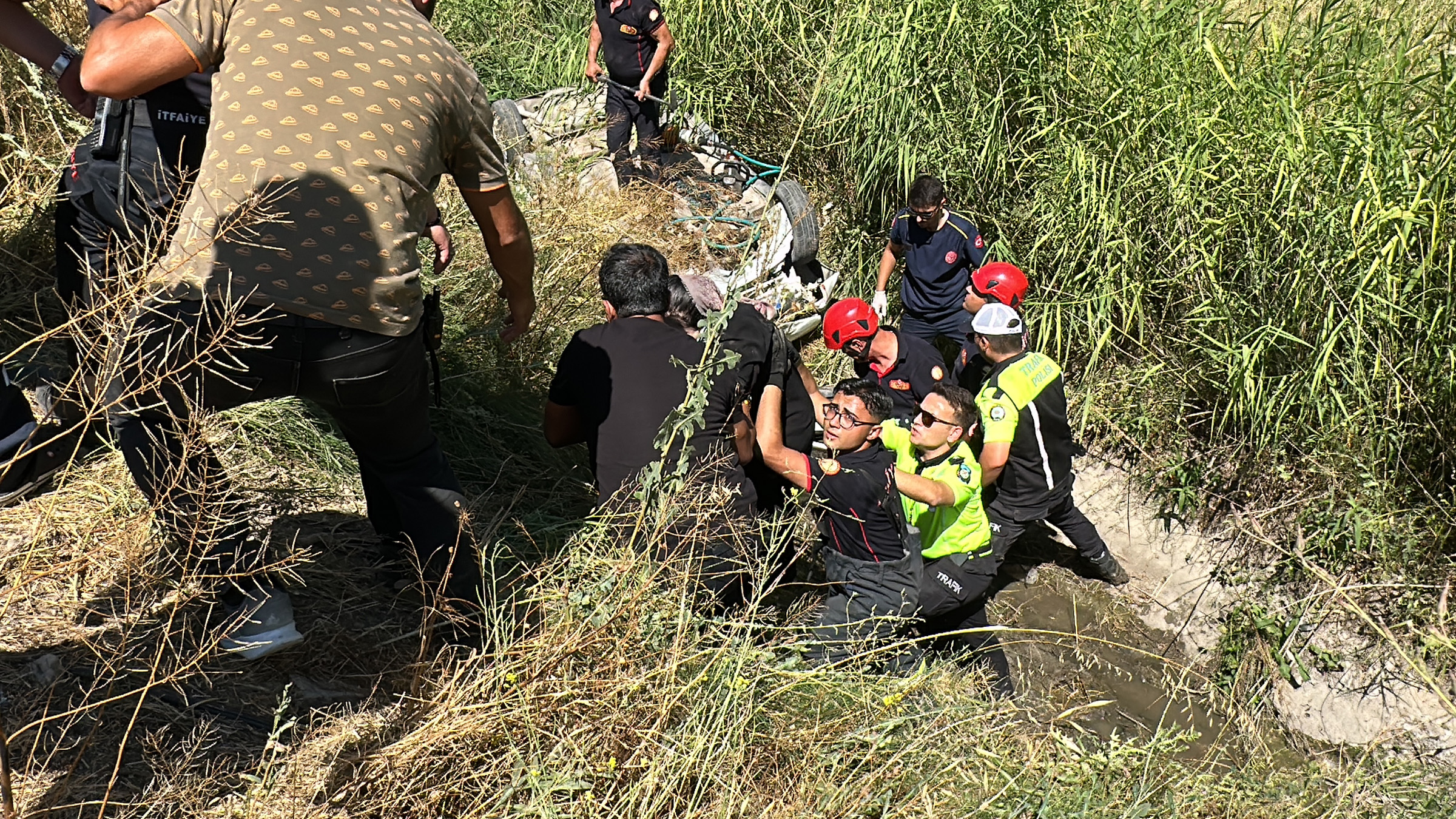 H.Ö., kullandığı 43 PB 162 plakalı otomobilin kontrolünü kaybetti. Savrulan araç, takla atarak su kanalına düştü. Ters dönen araçta, sürücü H.Ö. ile kızı E.Ö. sıkıştı.
