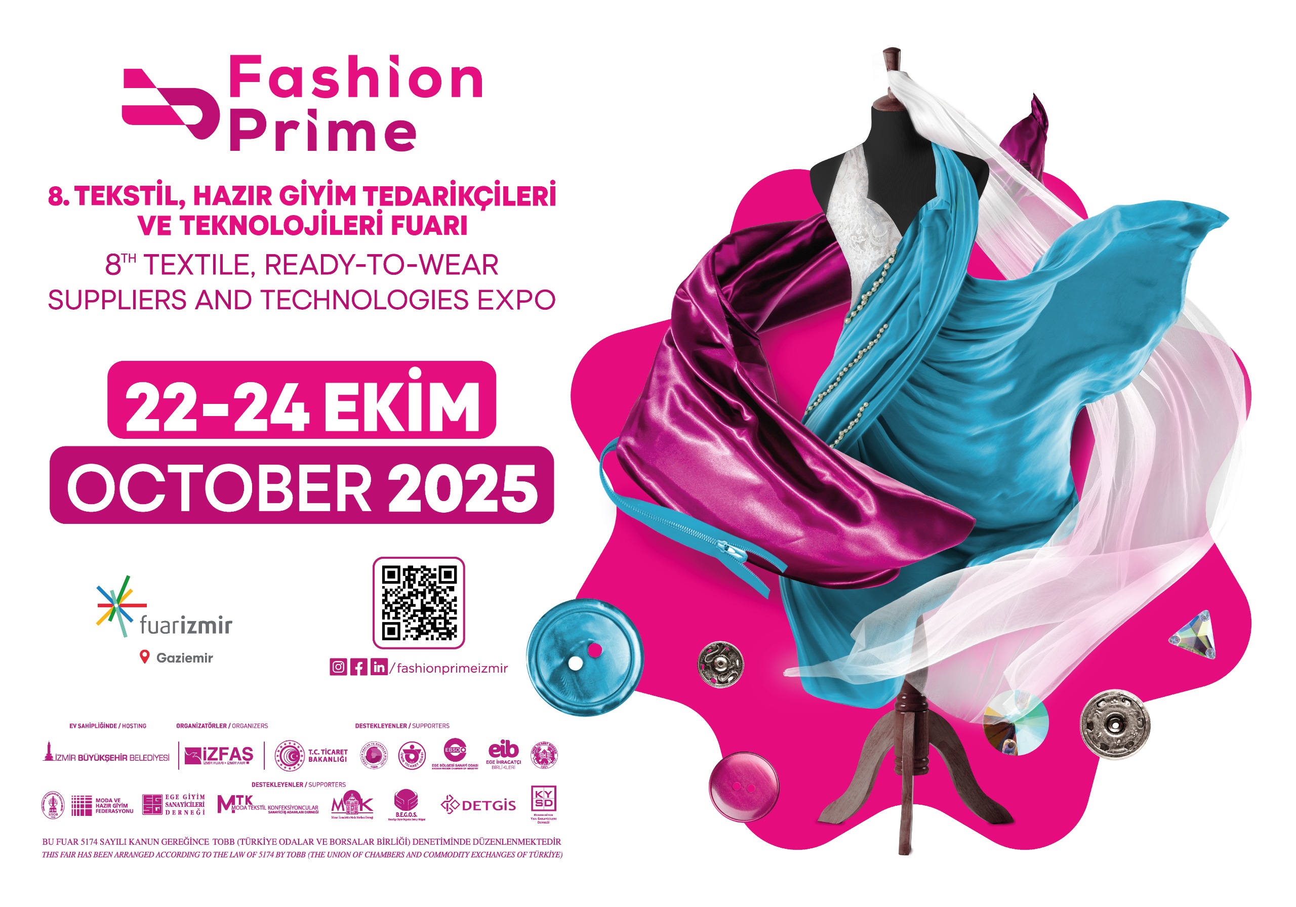 Bu yıl İzmir Büyükşehir Belediyesi’nin ev sahipliğinde İZFAŞ tarafından 8. kez düzenlenen Fashion Prime-Tekstil, Hazır Giyim Tedarikçileri ve Teknolojileri Fuarı için geri sayım başladı. Fuar İzmir’de 22-24 Ekim 2025 tarihleri arasında kapılarını açacak fuarda hazır giyim üreticilerinden tedarikçilere, tasarımcılardan yan ürün sağlayıcılarına kadar sektörün tüm paydaşları bir araya gelecek. Fuar süresince katılımcılar, kumaş ve aksesuarlardan ileri üretim teknolojilerine kadar ürünlerini sergilerken profesyonel ziyaretçiler de sektörün en güncel trendlerini ve yeniliklerini doğrudan görüp deneyimleme fırsatı bulacak.