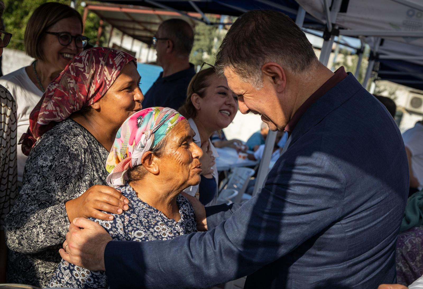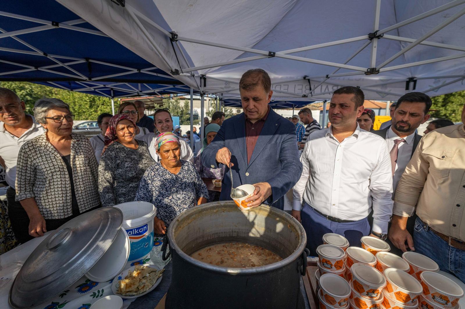 Aşure etkinliğinde konuşan Başkan Tugay, Görlüce Köyü'nün ihtiyaçlarını karşılamak için gereken desteği vereceklerini belirterek, “Her şey tanışmakla, birbirini doğru tanımakla başlıyor. Çok sıcak bir havada olmamıza rağmen sizlerin güler yüzünüzü, aydınlık yüzlerinizi görmekten çok mutlu oldum. Çocuklarımız, kadınlarımız, gençlerimiz, çalışanlarımız, emeklilerimiz, ihtiyaç duyan herkes için yaptığımız güzel hizmetlerde sizlerle birlikte olacağız. Bizi biraz darda, zorda bırakıyorlar ama ne olursa sizler yanımızda olduğunuz için eminiz her türlü güçlüğü hep beraber aşacağız. Güzel çocuklarımıza da güzel bir gelecek bırakacağız” diye konuştu.