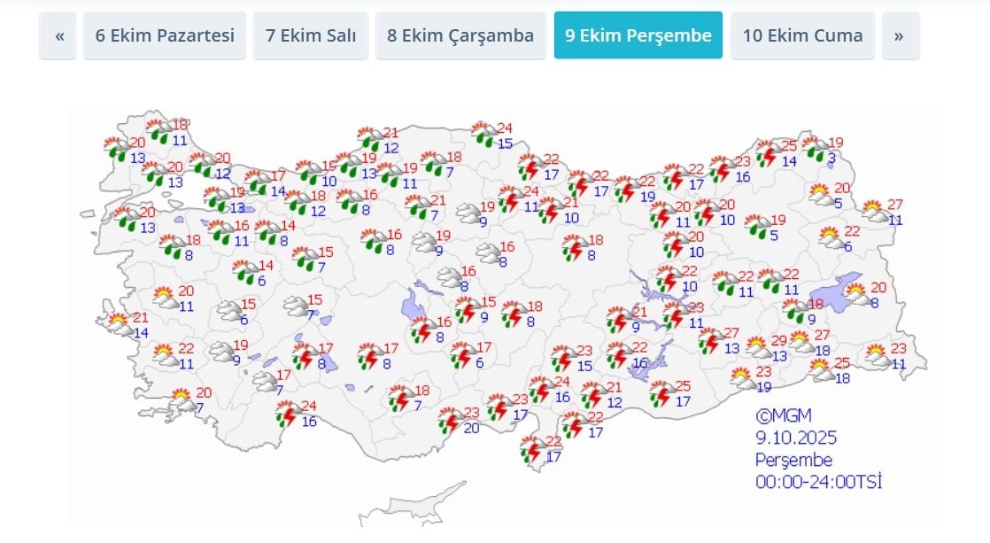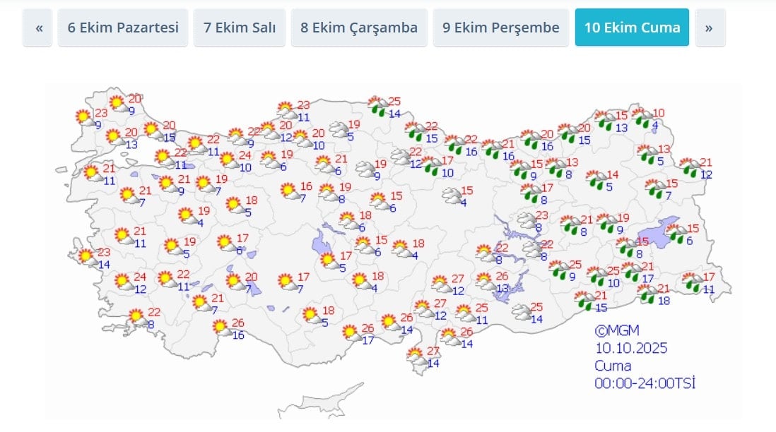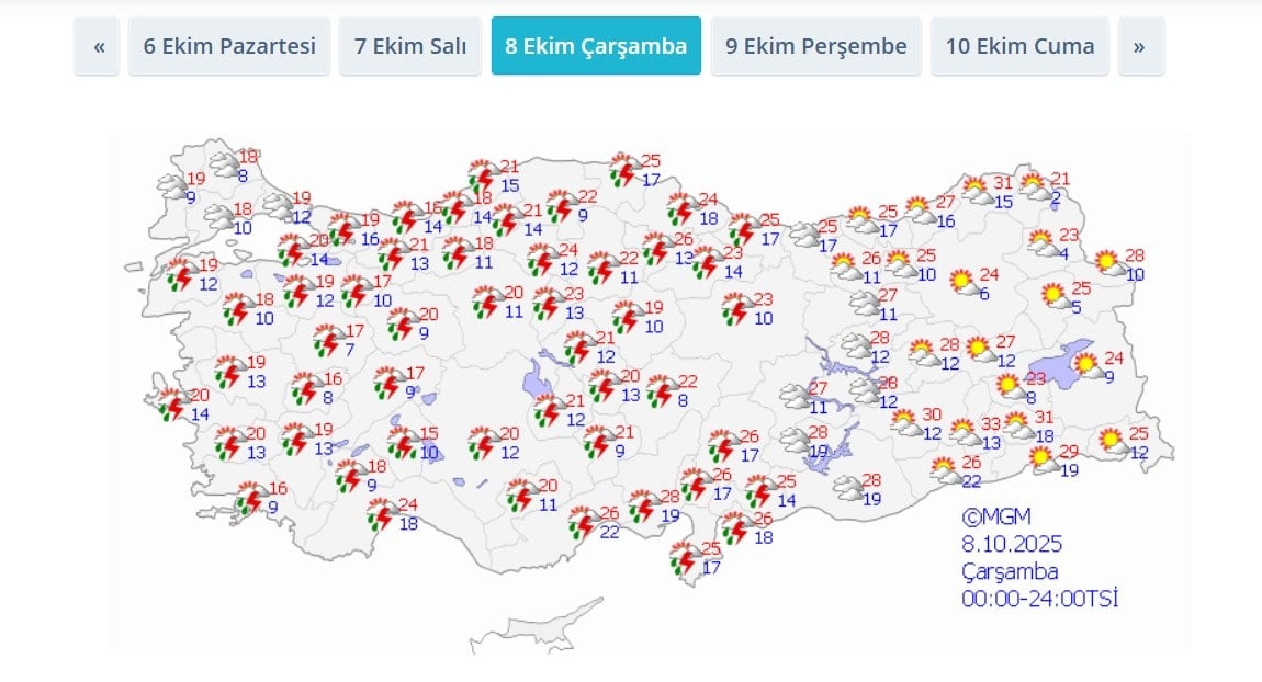 İşte il il güncel hava durumu;