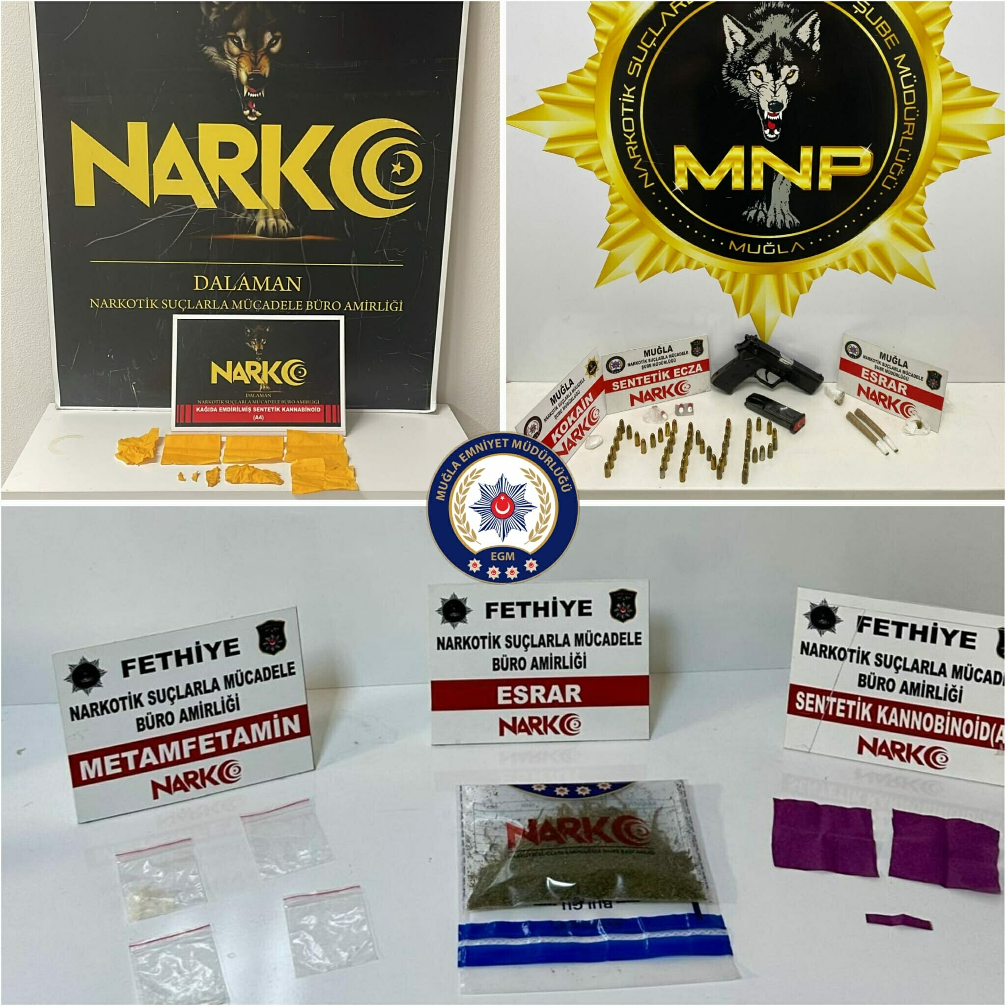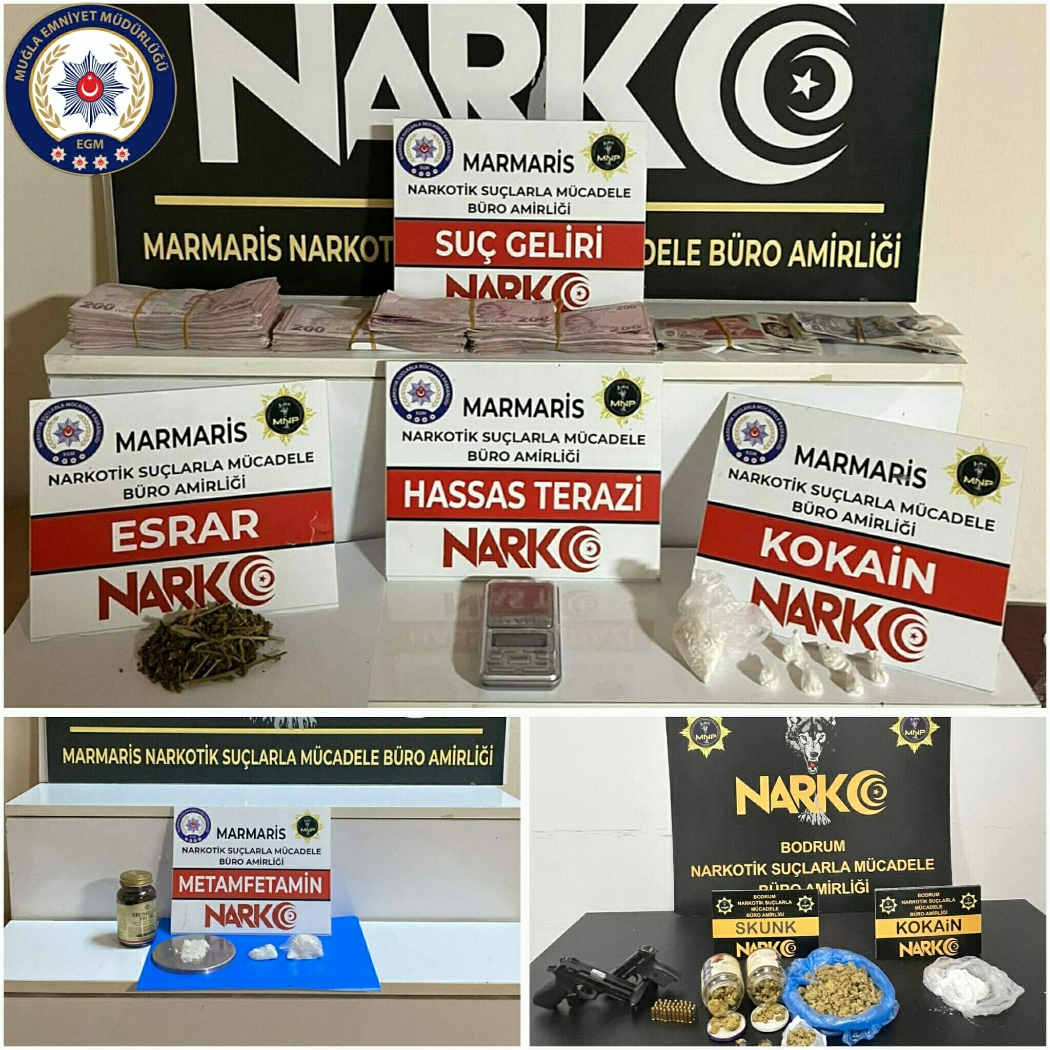 Muğla İl Emniyet Müdürlüğü Narkotik Suçlarla Mücadele Şubesi ekiplerince 1-4 Ekim tarihleri arasında il genelinde uyuşturucu madde ticaretine yönelik operasyon düzenlendi.